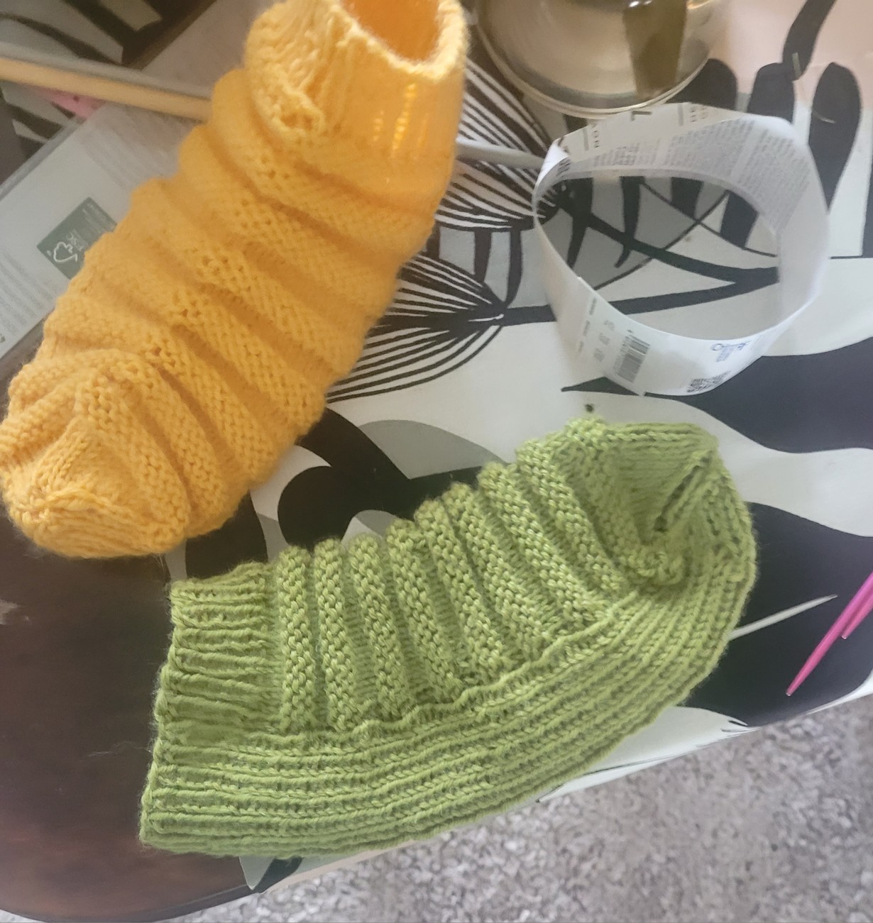 Lähetä kuvakisaan kuva lahjaksi tehdystä käsityöstä - voita Familonin pellavalakanat Banaanisukat ja raakabanaanisukat lapsenlapsille Mjaana 25.9.2025 klo 10:44 Lapsen toive banaanisukka.
