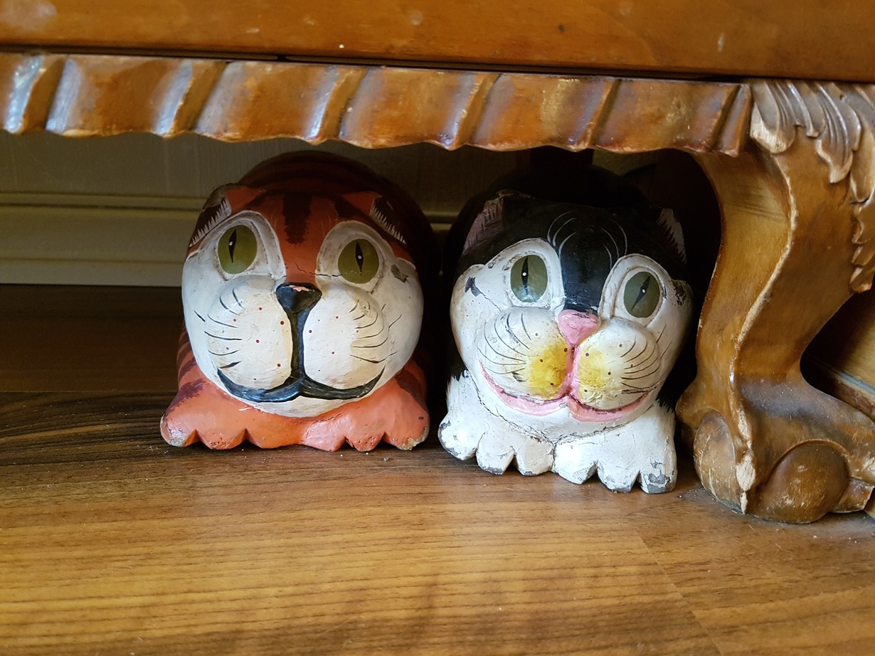 Olimme --99 Bangkokissa luokkaretkellä. Nämä painavat isot kissat matkasi luokkakaveri Hannun matkalaukussa kotiin...oli nimittäin itsellä painavat laukut?