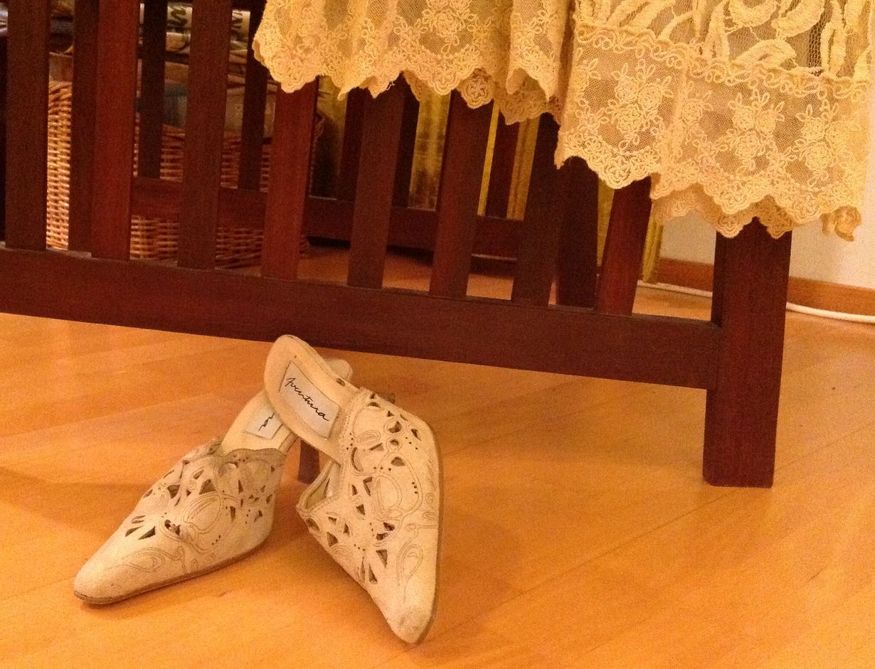 Nämä kengät olivat olleet minulla vuosia, mutta olin käyttänyt niitä vain pari kertaa. Laitoin ne vuosi sitten kirpputorille, mutta ne eivät käyneet kaupaksi. Nyt olen tyytyväinen, että niin kävi, sillä kun ostin juuri kenkien värisen pitsimekon, muistin että siihen sopivat jalkineet ovat valmiina kaapissa odottamassa. Kengille on taas käyttöä!