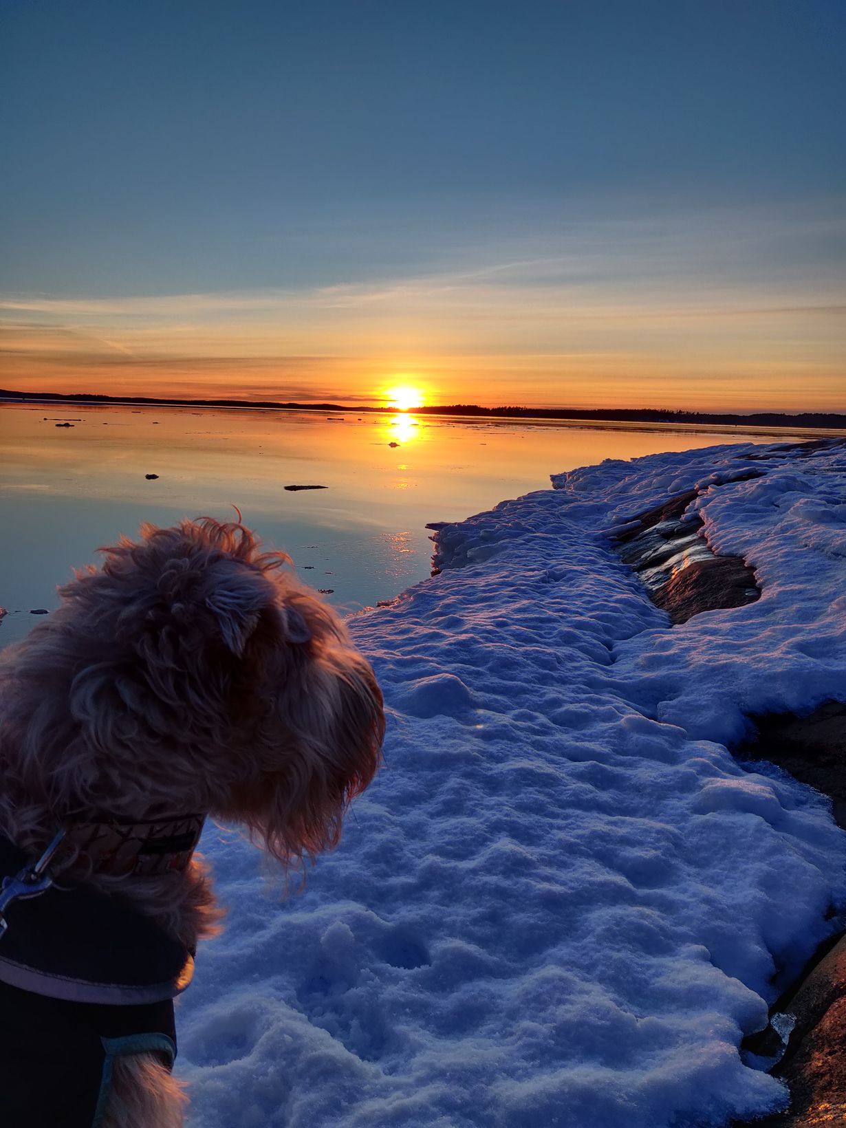 Ruissalon kuuvanokassa ihailemassa auringonlaskua.