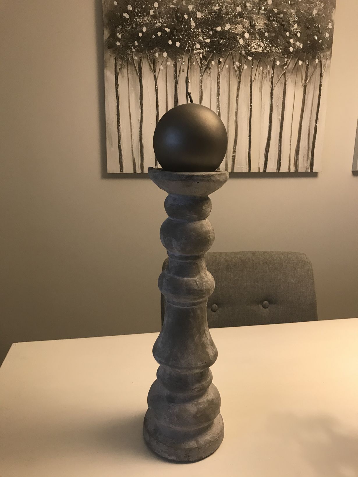 Sain tämän suurehkon betonisen kynttilänjalan, kun myin Perfect Homen sisustustuotteita. Se ärsytti minua, kun painoi paljon ja jouduin kuljettamaan sitä kotiesittelyistä toiseen... nyt se koristaa olohuonettani Balmuirin kynttilän kera.