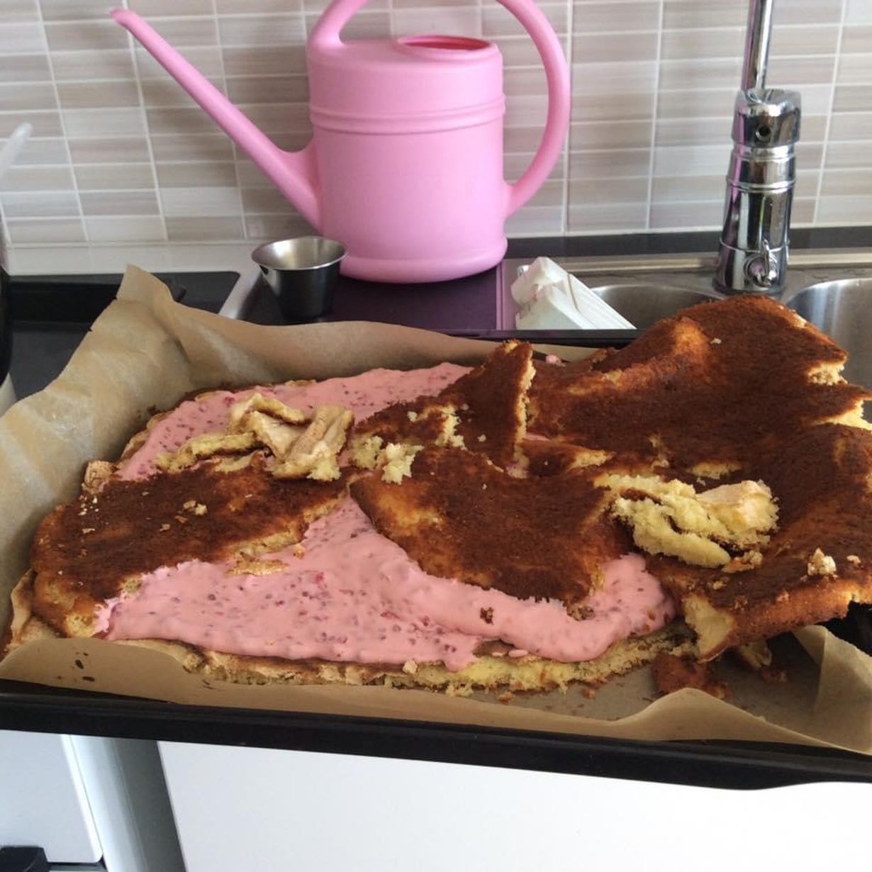 Britakakun päällisen laitto ei mennyt ihan kuin Strömsössä. Ei muistuta Briittaa edes vaaleanpunaisten lasien läpi.