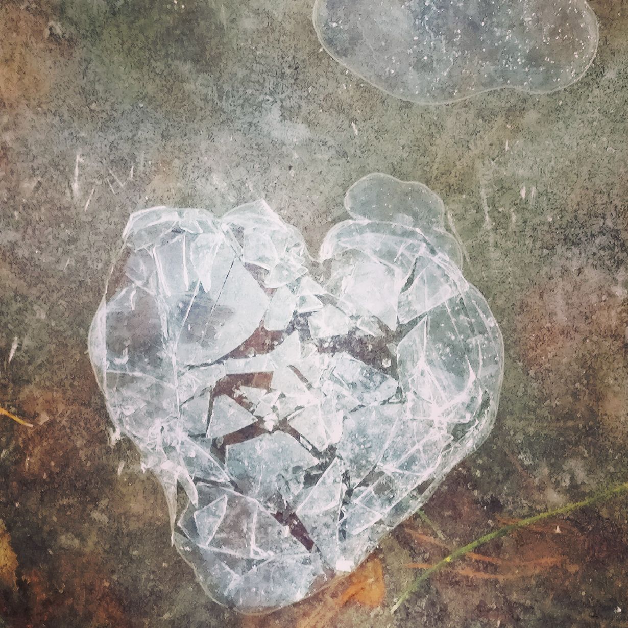 Pakkasen jäädyttämässä lätäkössä huomasin tämän särjetyn sydämen. Kuva on otettu 1/2017.