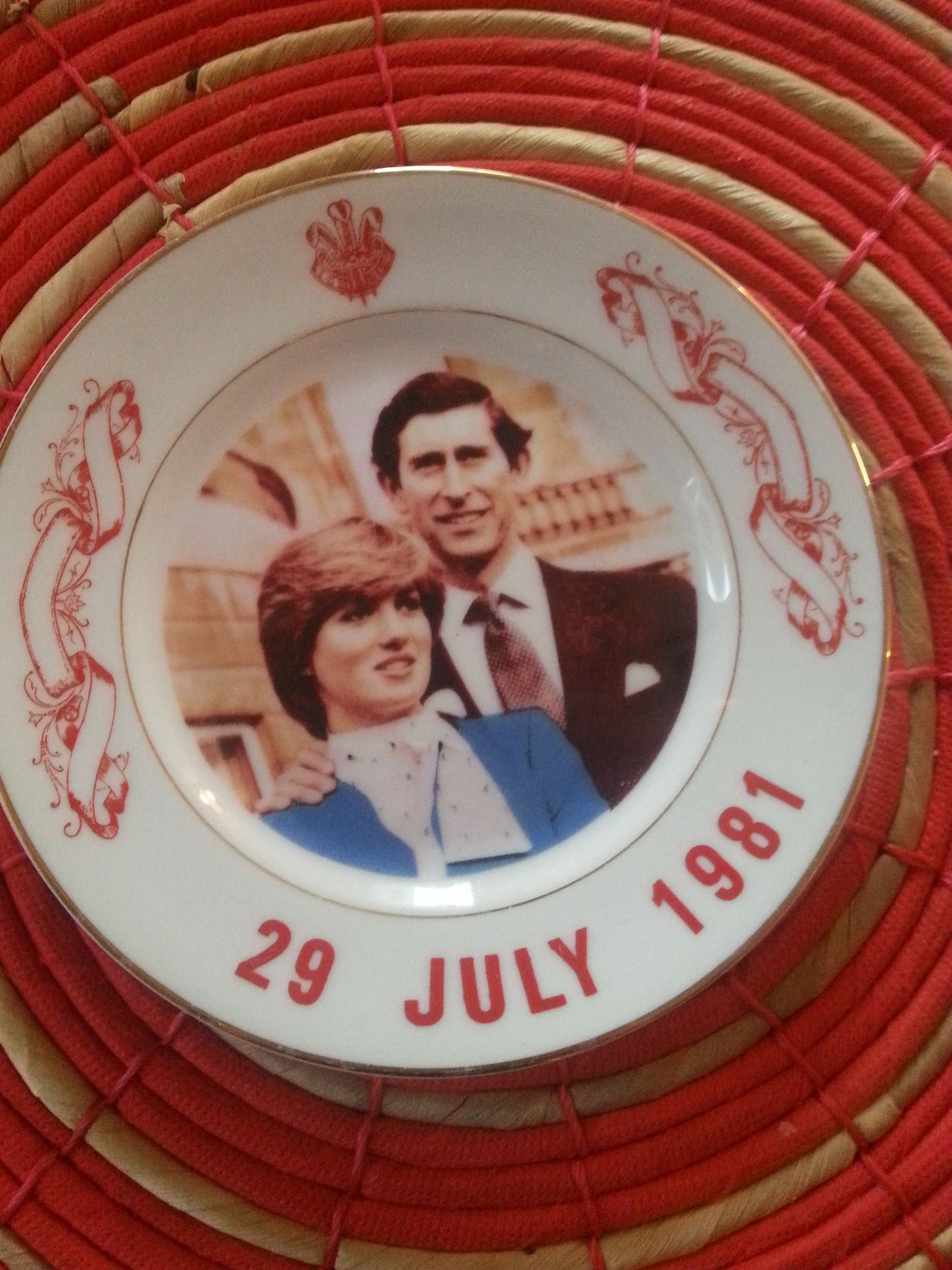 Tämä kirpparilöytö on seurannut minua asunnosta toiseen. Lähipiirini on yrittänyt salaa heittää lautasen roskiin, useastikin, mutta aina olen sen saanut pelastettua. Joka juhlissa joku saa syödä tältä kuninkaalliselta lautaselta. Ja kun aamupalaa syö tästä niin pakostakin rupeaa naurattamaan. Niin ruma lautanen.