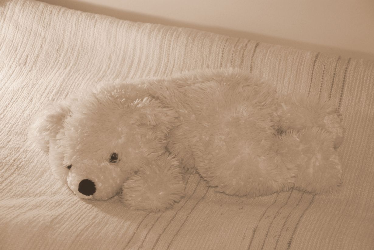 Kuvassa komeilee tyttärelleni usea vuosi sitten hankittu jääkarhu, joka on suloistuttanut arkeamme pitkään, mutta, jonka hankintahistoriasta emme päässeet yhteisymmärrykseen. Sen on saattanut ostaa isä tai äidin isä. Mukava ja pehmeä leikkikaveri se kuitenkin on ollut vuosien varrella.