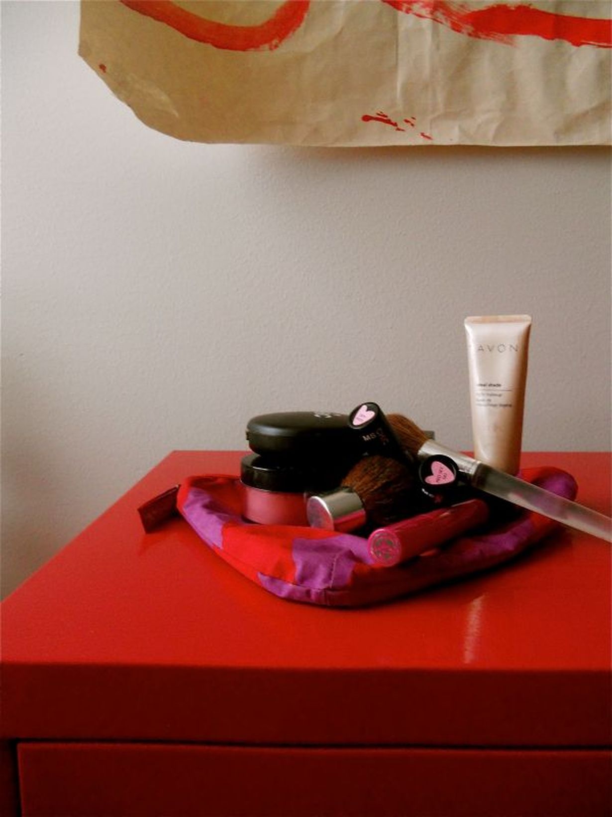 Meikkipussini on Gudrun Sjödénin käsialaa, ja se sisältää värit ja siveltimet tämän oman elämänsä taiteilijan kasvomaalauksiin – suosikkipuna on punainen, kotimaisen MSCHIC:in "DIRTY SANTA", mikä onkin juuri sopivan kontrastikas kuvaus.