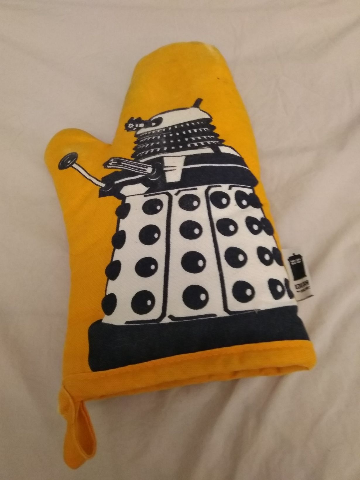 Hankin Doctor Who -teemaisen patakintaan kyseistä sarjaa fanittavalle miehelleni joululahjaksi Lontoosta. Kokkailusta pitävälle lahja oli mitä mieluisin ja kuten ulkonäöstä huomaa on se ollut ahkerassa käytössä :)