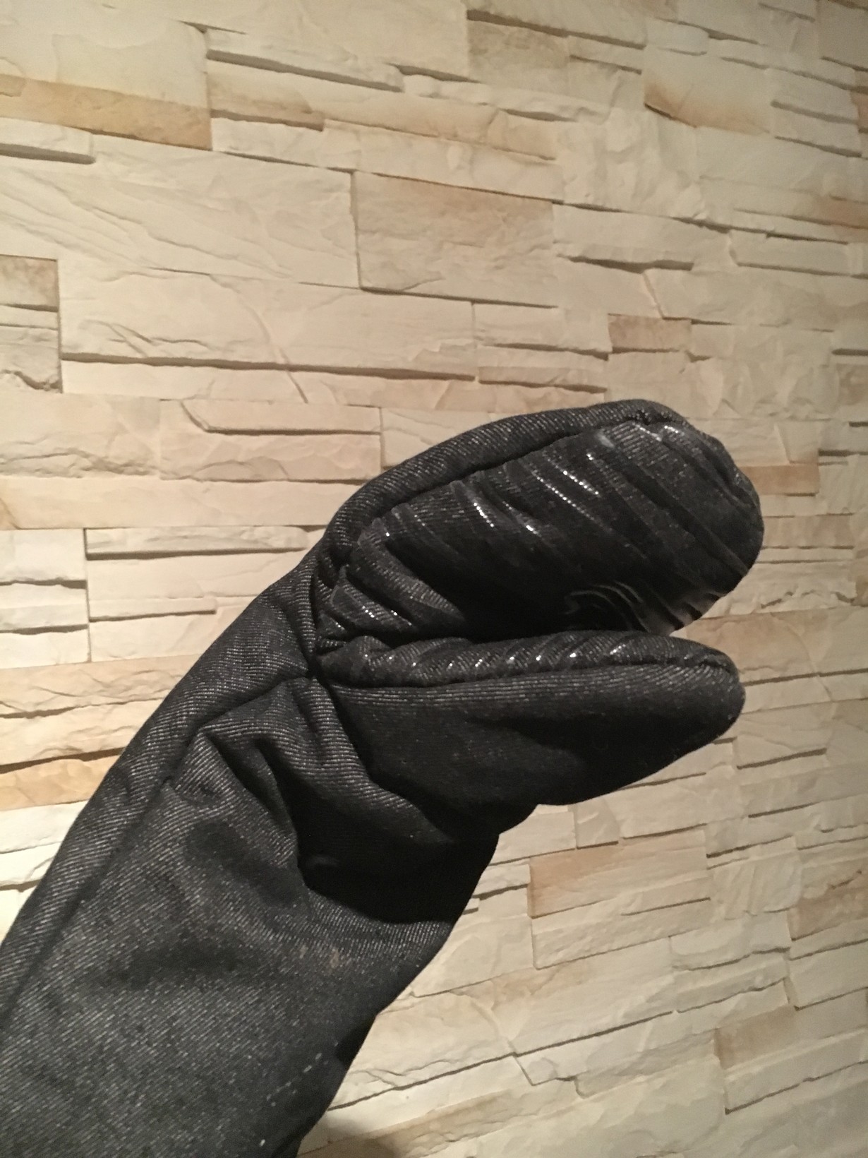 ...toimii! Tätä kuvaa ottaessa tosi tuli ajatus, että voisi sitä ostaa uuden patakintaan. Onhan tämä nyt aika ruma! Kinnas on alunperin poikaystäväni ja jäänyt yhteisessä kodissa käyttöön. Missä minun omat kintaani ovat? Kyllä minulla sellaisia on ollut...