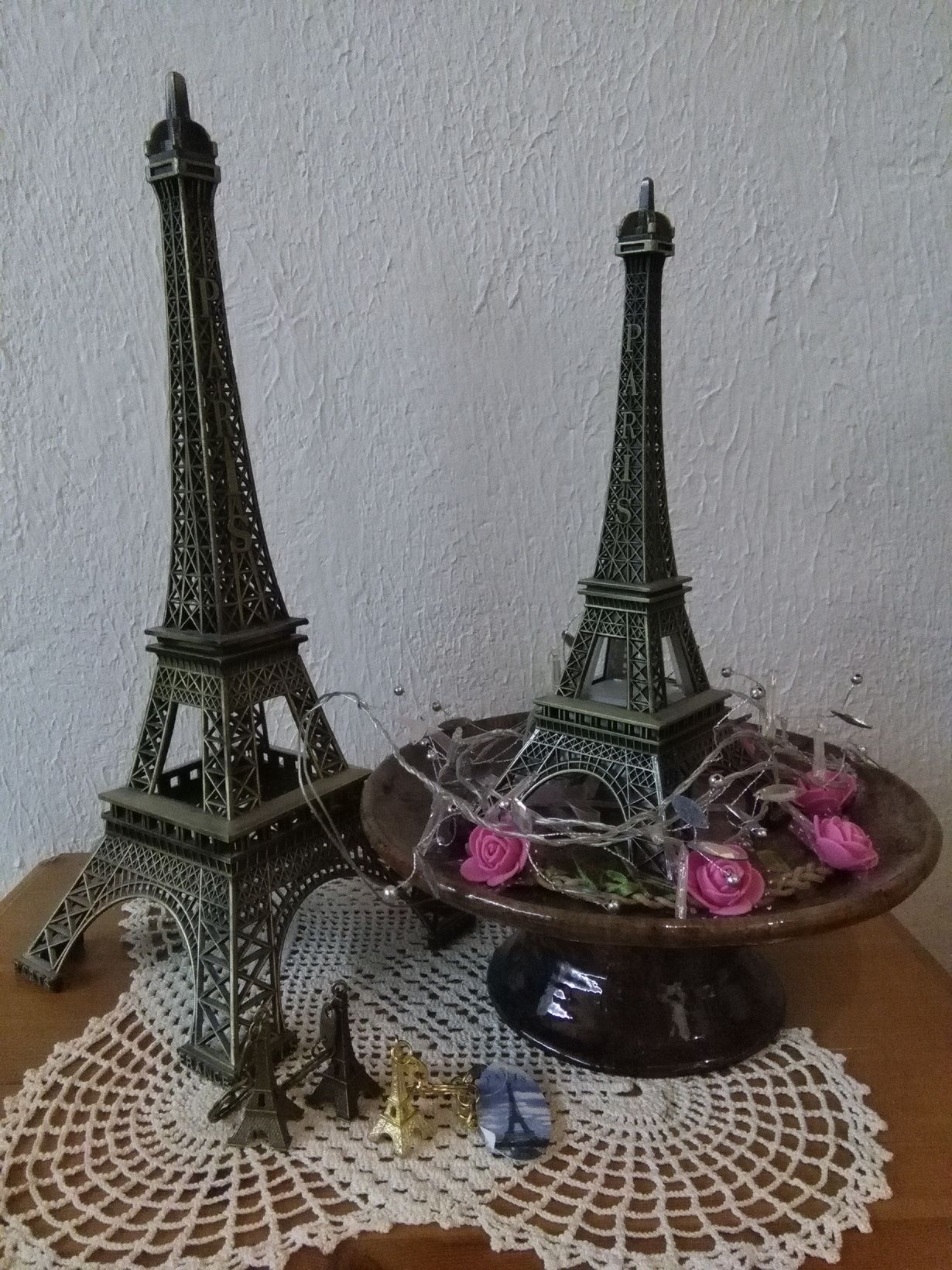 Olen suuri Eiffel-tornin ja ranskan kielen ihailija.Olen käynyt Pariisissa 2 kertaa,viimeksi v.2017 heinäkuussa.Molemmilta matkoiltani olen tuonut matkamuistona Eiffel-tornin.Viime kesänä myös suuri haaveeni toteutui ja pääsin käymään Eiffel-tornin huipulla.Pienempi Eiffel-torni myös "välkehtii" ja vaihtaa väriä.Ostin sen siksi,koska pääsin useamman kerran näkemään Eiffelin "välkehtivänä" livenä illan hämärtyessä viime kesän reissullani.Eiffel-torni on vaan niin ihana ja lumoavan kaunis enkä kyllästy koskaan sen katseluun!