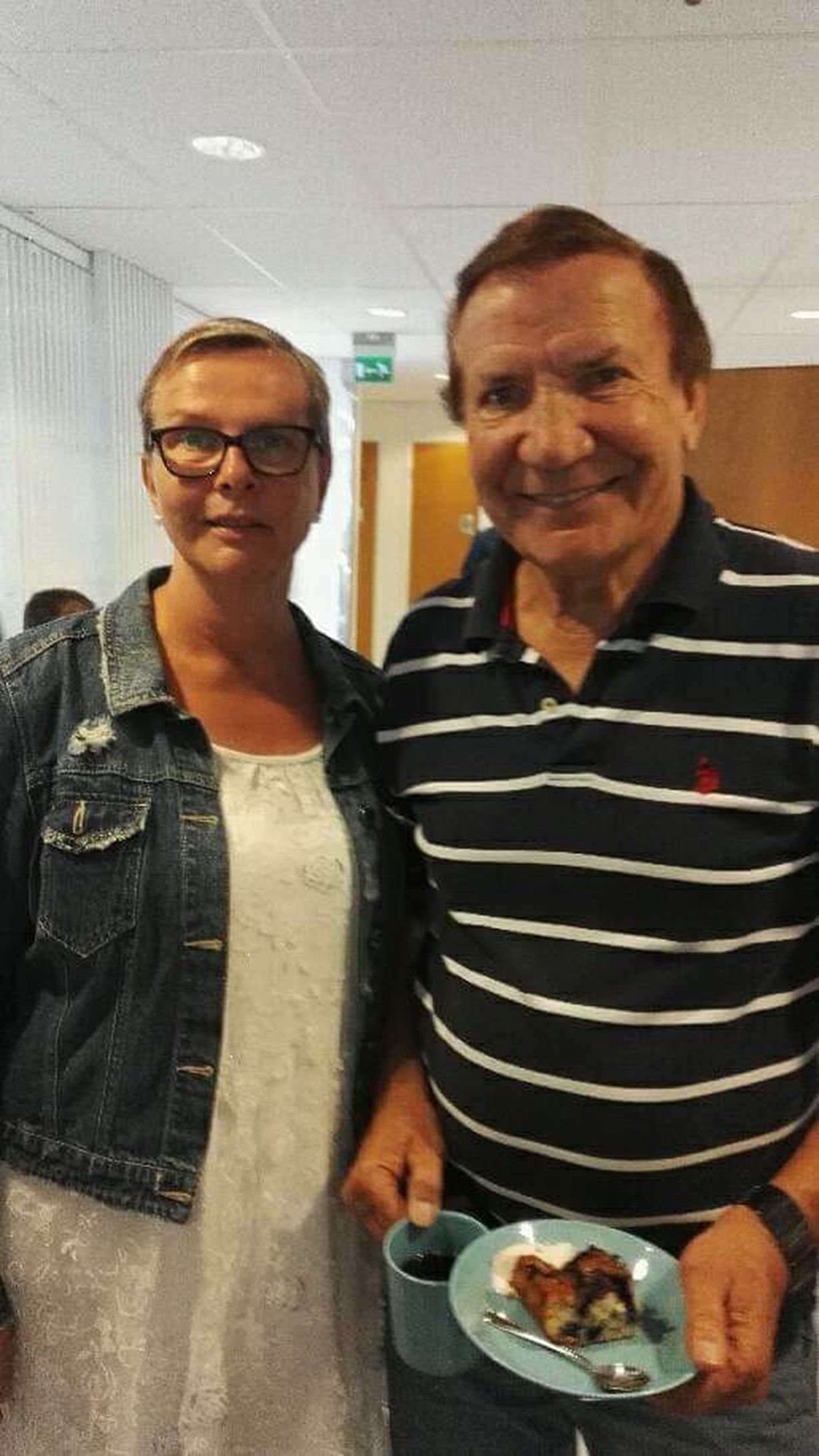 Ensimmäisenä kesänäni uudessa työpaikassa muistisairaiden osastolla kävimme asukkaiden kanssa Myllypurossa Eino Gröniä kuuntelemassa. Jännitti ihan hitokseen, kun pääsin suuren maestron kanssa yhteiskuvaan. Kuva vuodelta 2017.