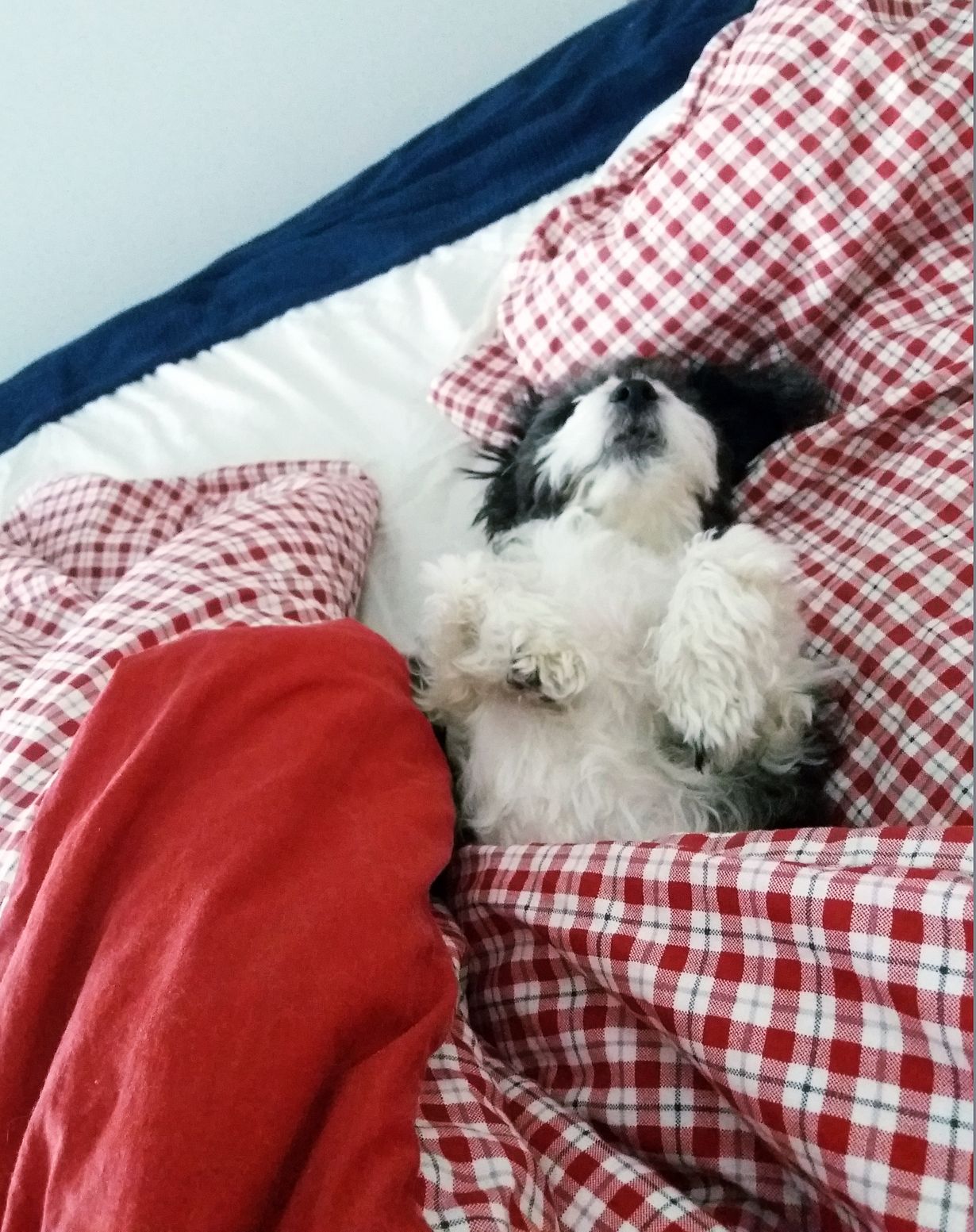 Espanjasta alunperin 2011 Suomeen tupsahtanut sekarotuinen Mona (nyt 9v) on mitä mainioin unikaveri! Pieni koira, mutta vie kyllä yli puolet sängystä sillepäälle sattuessaan!