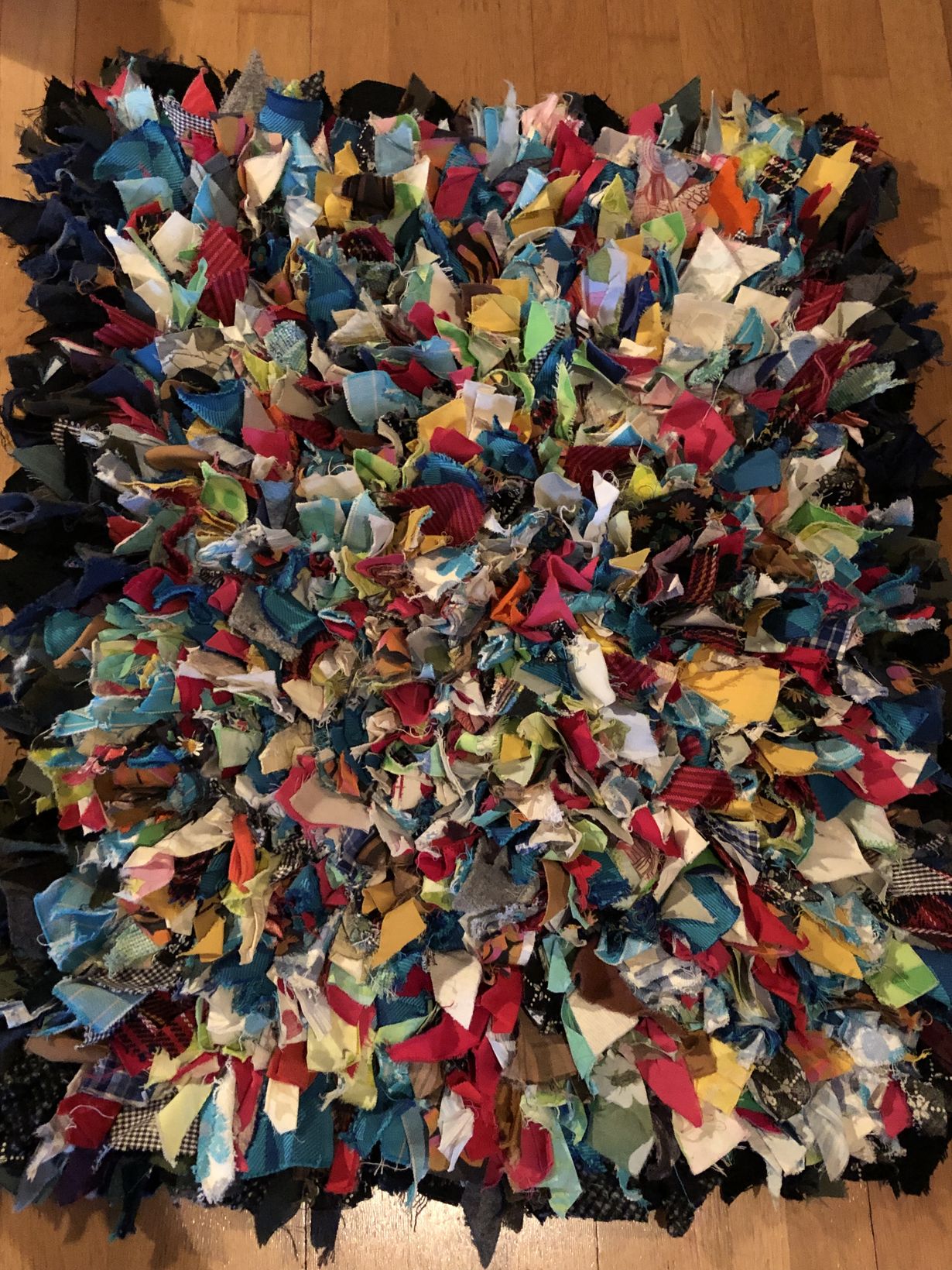 Nämä kaikki matossa olevat tilkut ovat jäännöspaloja ompelemistani vaatteista, 1960-70 luvulta.
