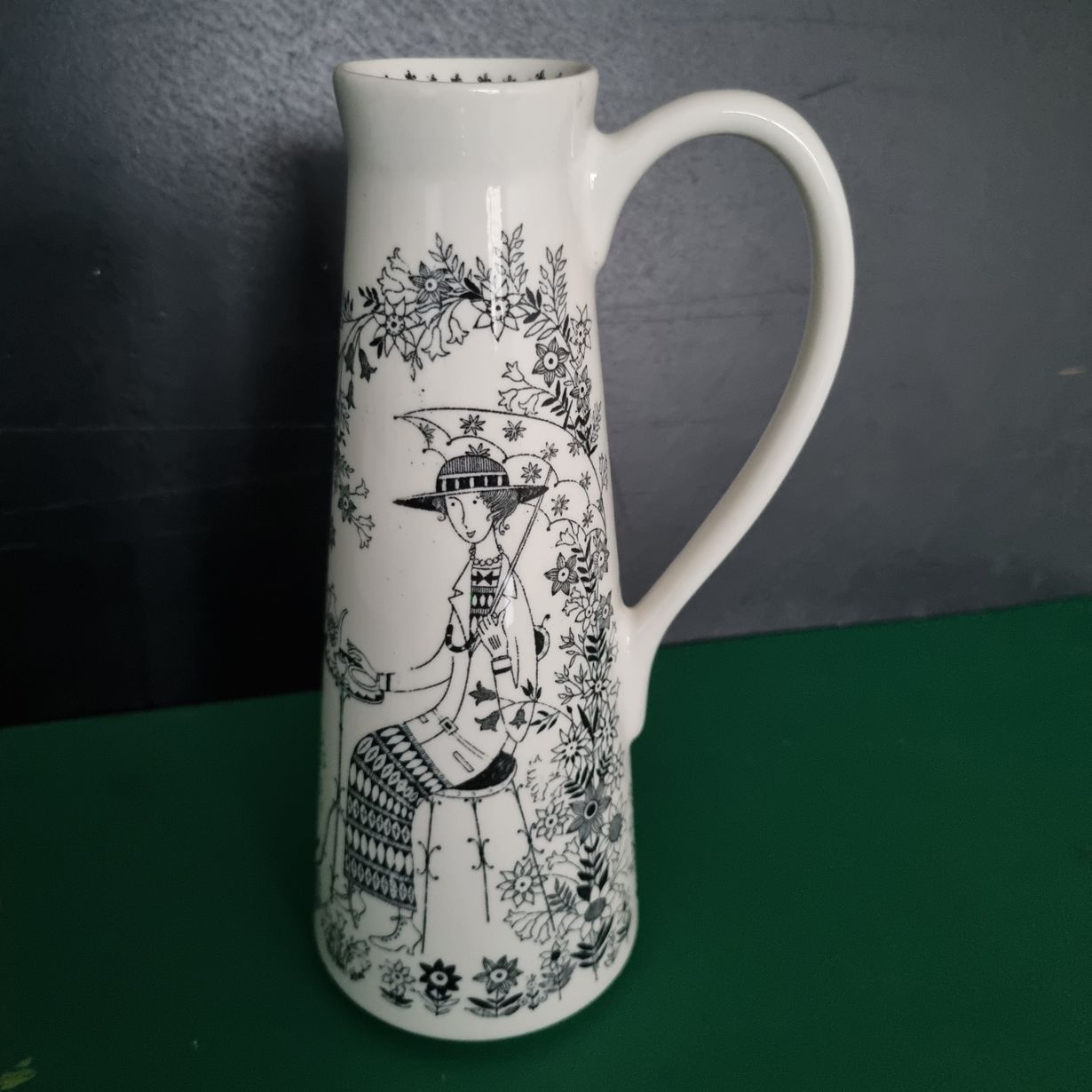 Perintönä saatu Emilia-sarjan maljakko, jonka esikuvana on keraamikko Raija Uosikkisen Selma-täti nuorena kukkahattuineen.