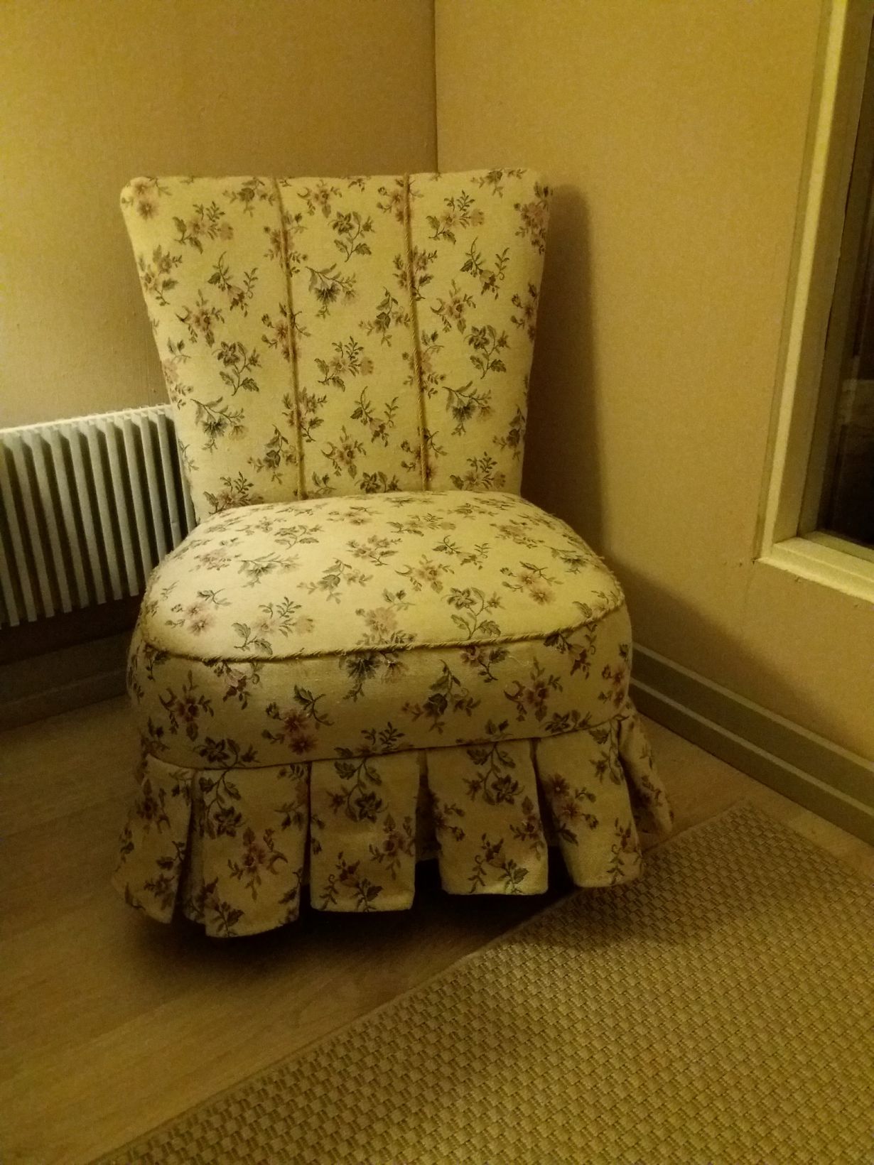 Vaihdoin nuoruudessani vuokrakämpästä toiseen v. 1986 ja tämä emma löytyi hyljättynä tyhjän huoneen nurkasta. Vein aarteeni verhoiltavaksi. Vuosien varrella 'hän' on seurannut minua muutoista toiseen. Tässä pätee sanonta: "Toisen romu on toisen aarre."