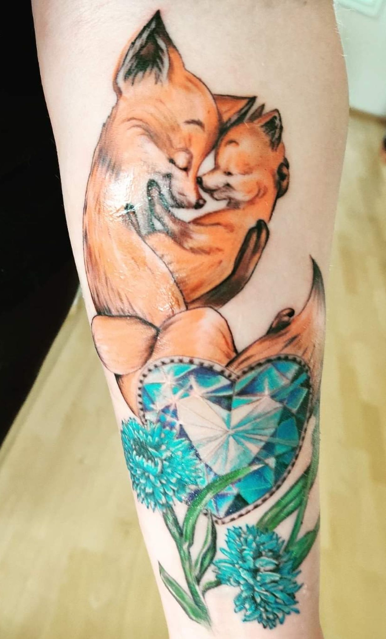 Esikoispojan syntymän kunniaksi otettu kuva äidin käsivarressa. Pojalle on syntymästään asti kertynyt ihan tiedostamatta kettu aiheisia leluja ja vaatteita. Viime kesänä näimme yhdessä pojan kanssa maailman hellyyttävimmän näyn,kun kettuemo ja pieni poikanen kävelivät rinnakkain meidän kotikujalla. Lienee meidän toteemieläin. Ruiskaunokit kuvastavat pojan syntymäkuukautta.