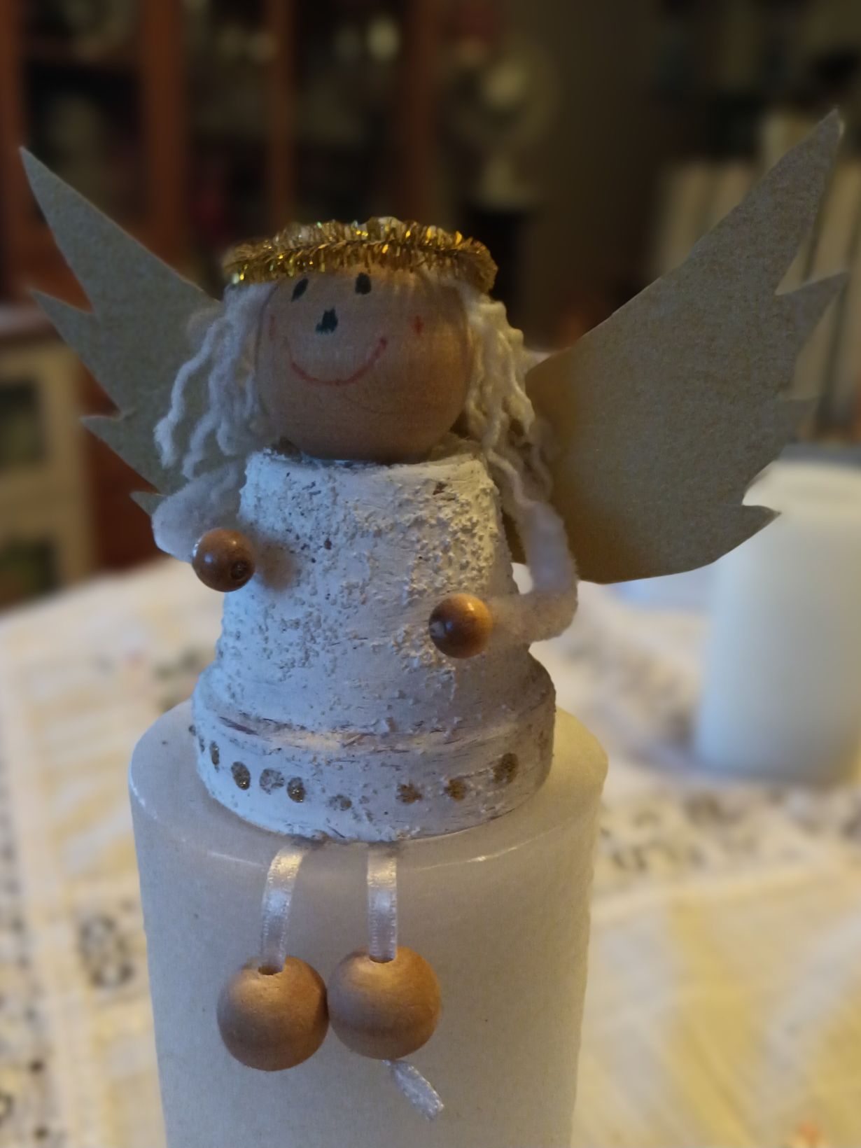 Tämän ihanan jouluenkelin on laoseni tehnyt käsityötunnilla..liki 20 vuotta sitten.. tämä katselee meitä läpi vuoden vitriibistä :)