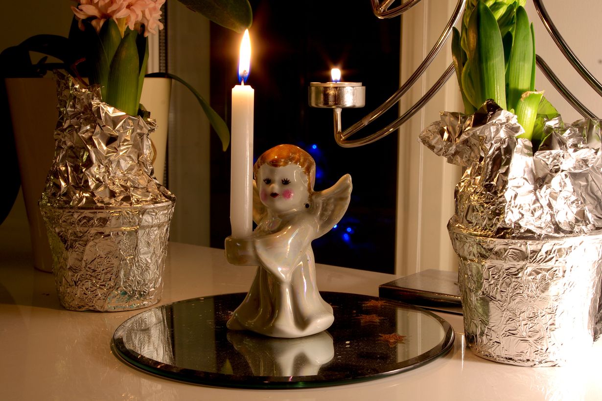 Tämä on vanha lapsuudenkodistani lähtöisin oleva enkeli kynttilänjalka, joka tuo aina lämpimät lapsuusmuistot mieleen. Tämän äitini laittoi aina esille kun joulun odotus alkoi Ja itse jatkan nyt perinnettä oman perheeni kanssa.