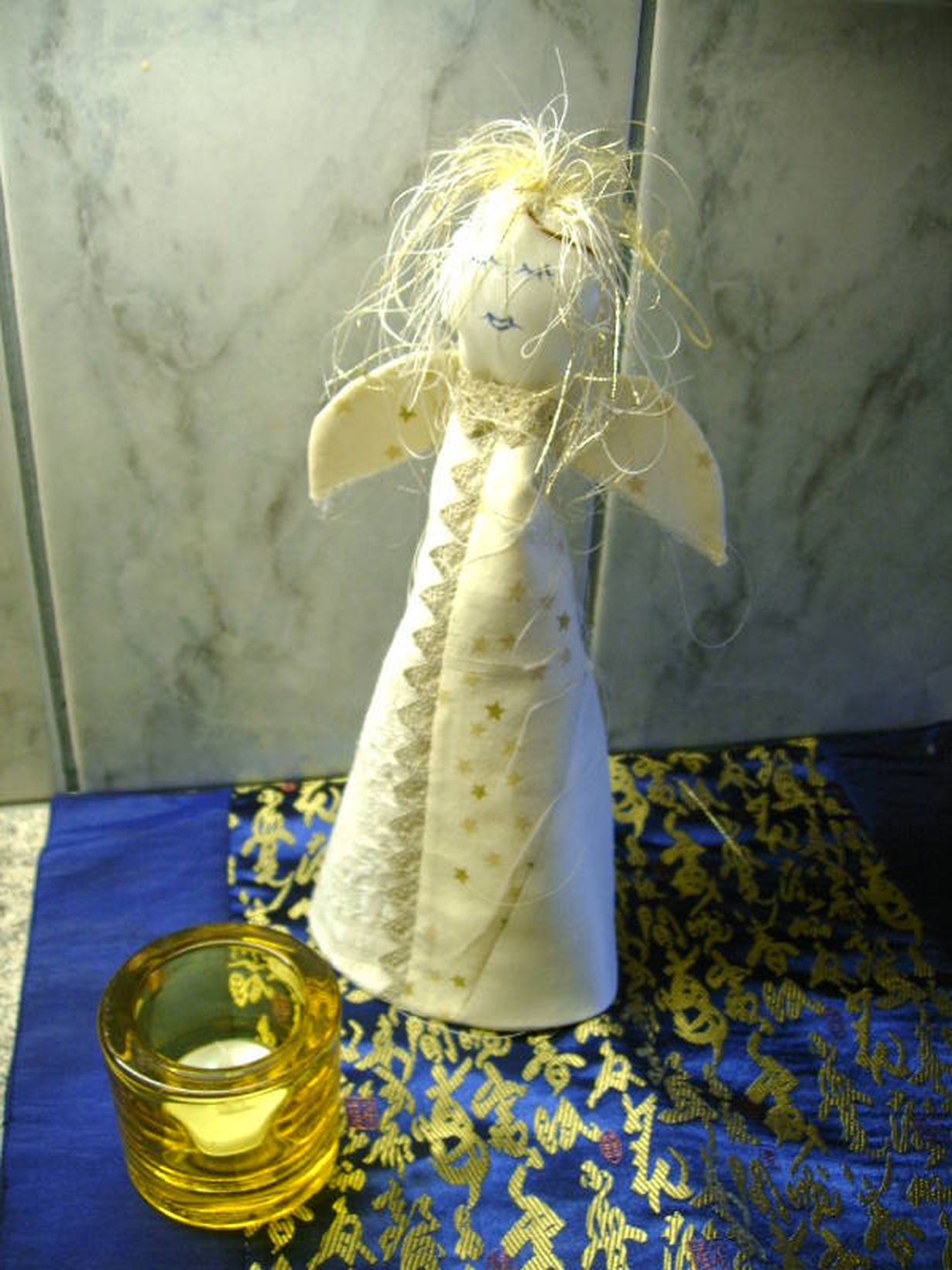 Tämä ihana arki: enkelikoriste ENKELINI 24.10.2011 klo 12:57 Puhuttava, oma tekemä, yllään pala äidin pellava liinaa ja -pitsiä. Kulta sädehtii helman tähdissä ja niin pörröisissä hiuksissa.