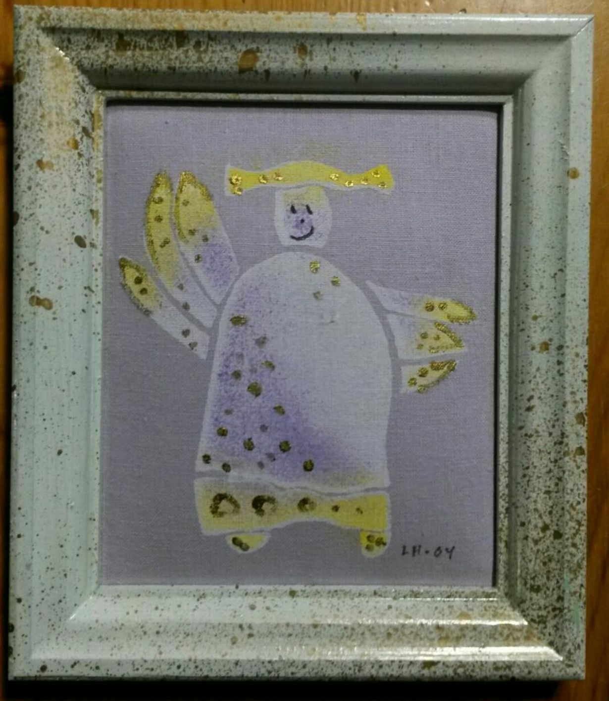 Kuvaa jouluenkelisi. Voit voittaa Nanson lahjakortin! Enkelitaulu L.H. 25.10.2016 klo 22:09 Vuonna 2002 silloin 5-vuotias tyttäreni piirsi jouluenkeleitä, jotka sitten myöhemmin painettiin kankaalle joulutauluiksi