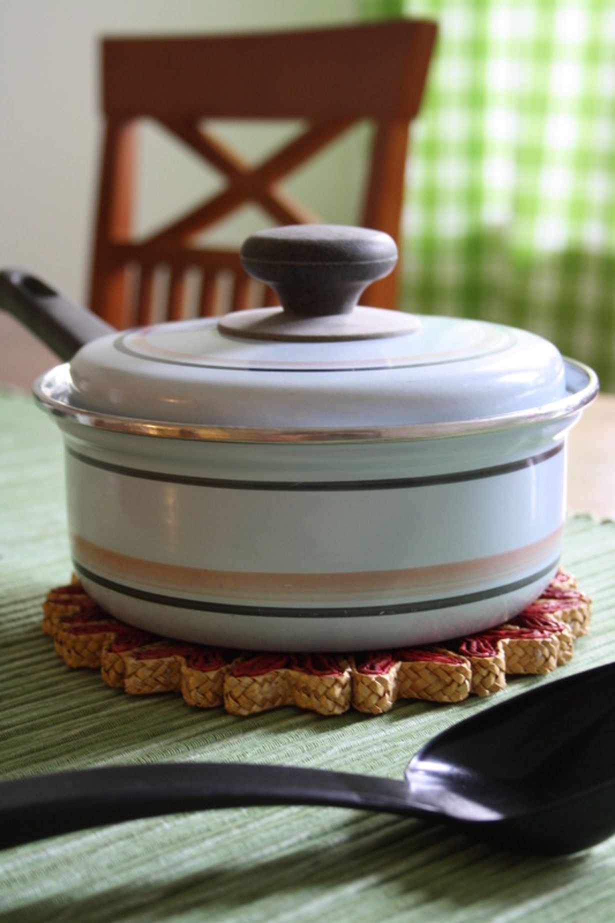 Ensimmäisen ihanan kattilani sain vanhemmiltani 16-vuotiaana, kun lähdin opiskelemaan. Sillä on monena iltana opiskelijakämpässä keitetty teevedet ensimmäiselle poikaystävälle. Ehkä siksi siinä on tunnearvoa. Kattila on ollut minulla 26 vuotta, käytössä silloin tällöin vieläkin, mutta jokapäiväisessä käytössä se ei enää ole.