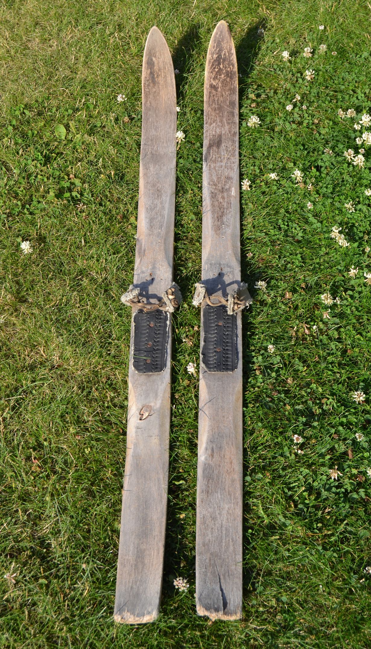 Näillä yli 60-vuotta vanhoilla (104cm) suksilla minä ja sisarukseni olemme opetelleet hiihtämään. Nyt sukset ovat kotonani koriste-esineenä lasiterassilla.