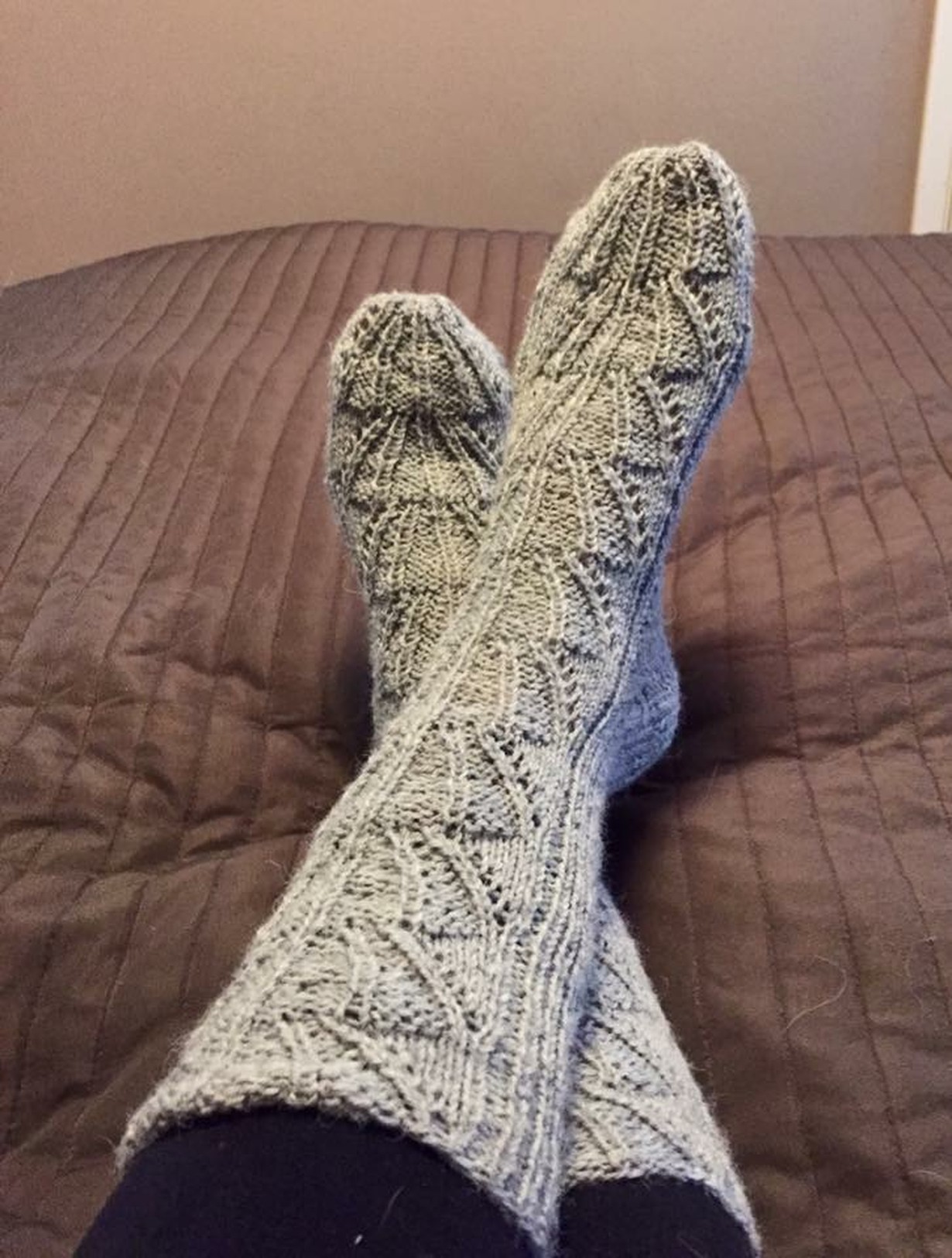 Nämä villasukat ovat ensimmäiset ja toistaiseksi ainoat itseneulomani sukat. Neuloin ne tänä syksynä, ja voin sanoa että tunnen suurta onnistumisen iloa, että sain ne valmiiksi, ja ne ovat juuri sellaiset kuin halusin. En ole koskaan ollut neulojatyyppiä, ja siksikin nämä villasukat oli minulle saavutus.