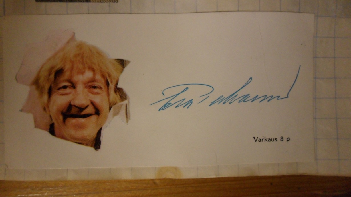1970-luvun alussa Esa Pakarinen antoi tämän kortin ujolle ja hiljaiselle teinitytölle paikallisen osuuskaupan tilaisuudessa. En enää muista mitä hän minulle sanoi, mutta loukkaannuin siitä "verisesti". Siitä huolimatta liimasin kortin "popparivihkooni"!!!