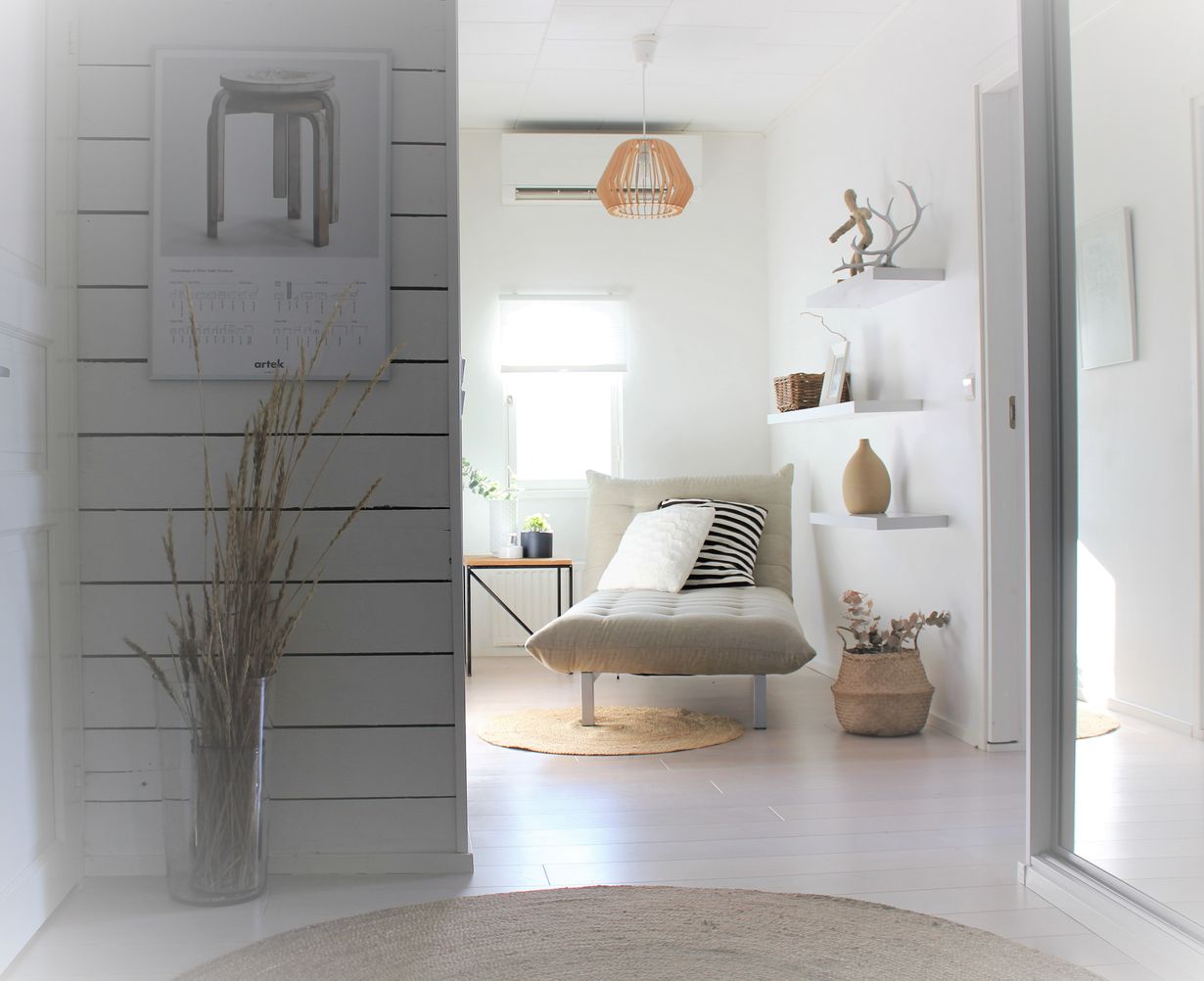 Voisi ajatella, että kodin sekaisin paikka olisi eteinen. Meillä ulkovaatteet ja kengät pysyvät piilossa peilikaapissa. Nurkkauksessa meillä on eri vuoden aikojen mukaan väriä vaihtava lukunurkkaus.