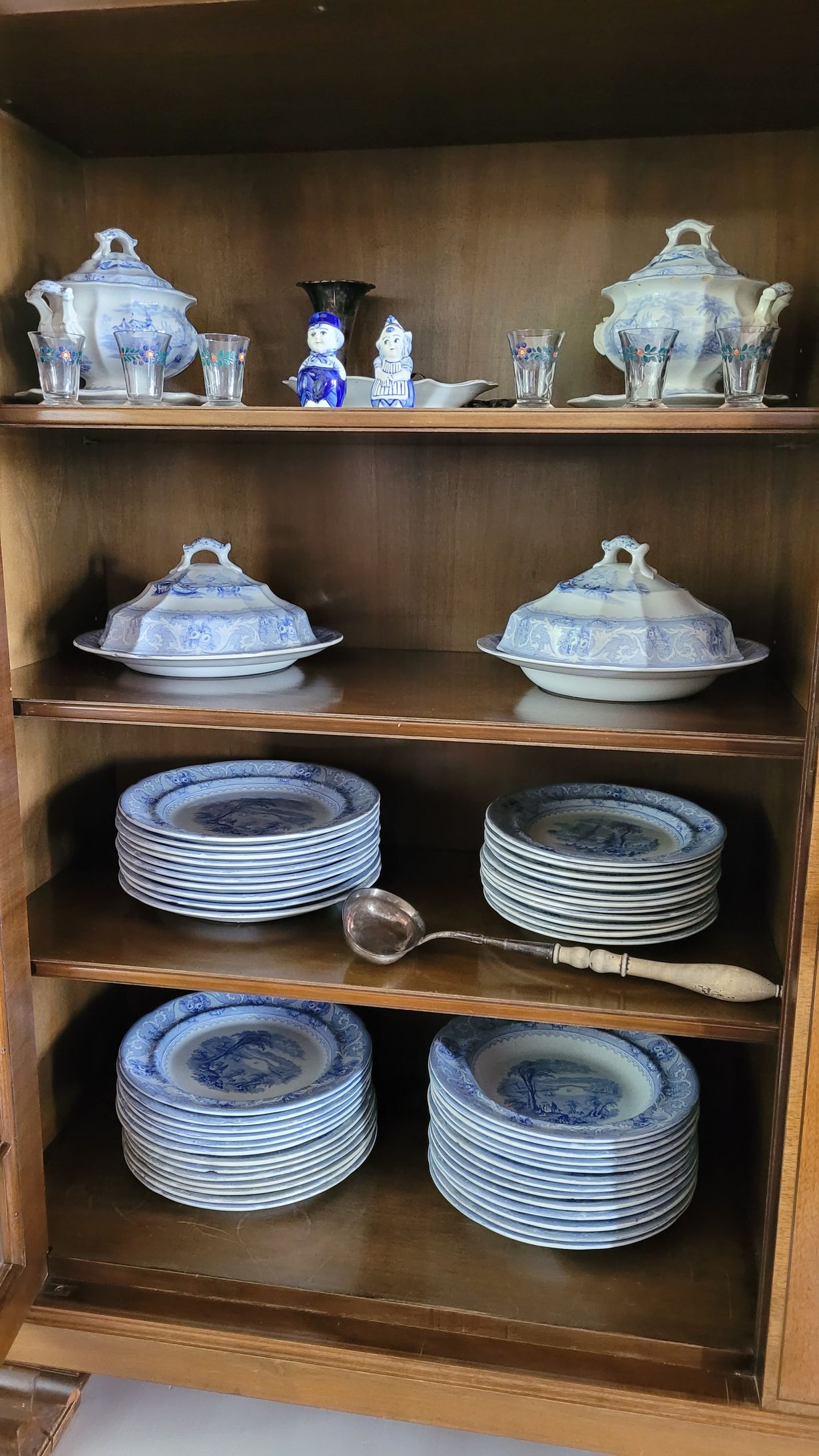 Anoppi kaivoi tämän Lake-astiaston esiin eteisen yläkaapista vain jouluksi. Mekin katamme sen joulupöytään, mutta nyt astiasto saa olla kunniapaikalla perintökaapissa ruokapöydän vieressä koko vuoden. Astiasto lienee alunperin 1950-luvulta mieheni Agda-Mummun huvilalta, jonne lapset perheineen kokoontuivat viettämään lomaa.