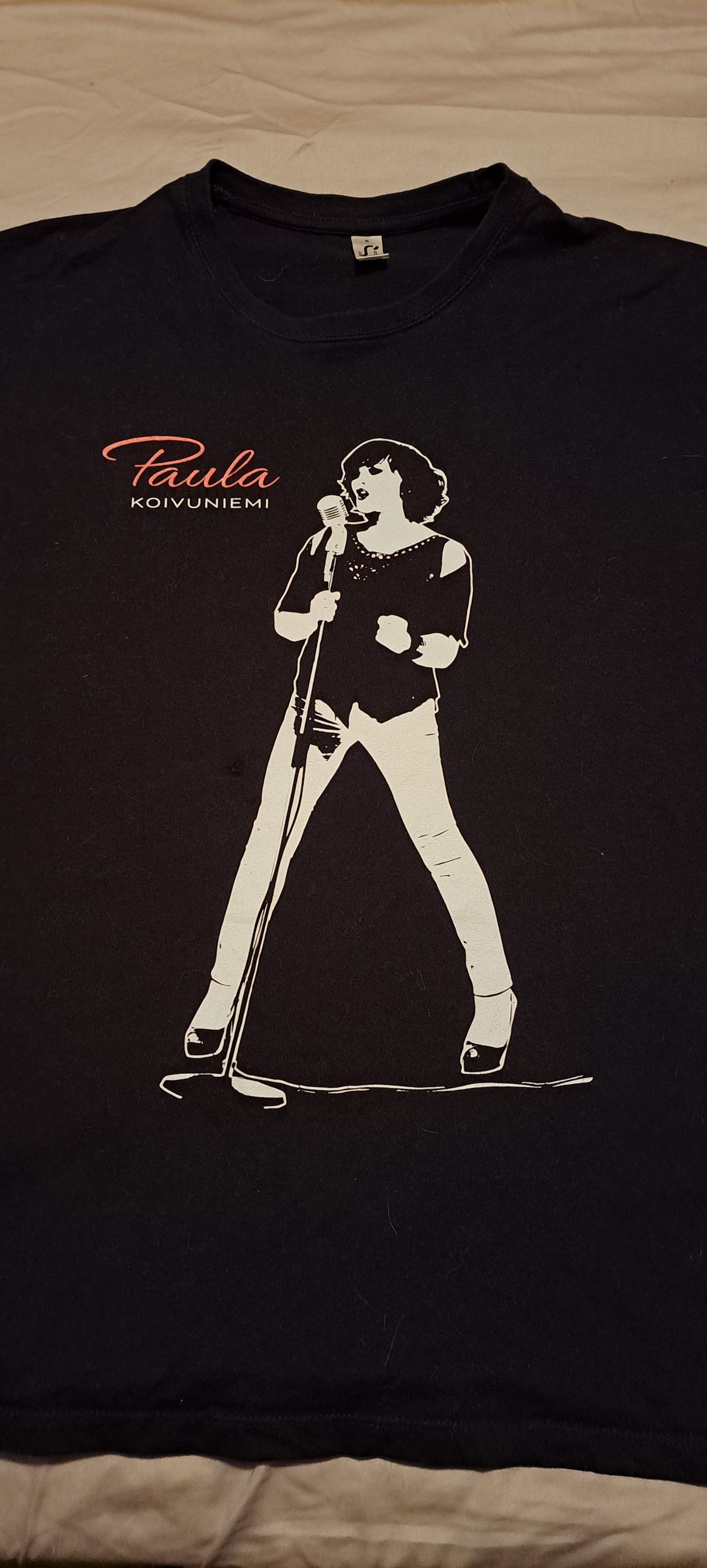 Olin Tamperella viime toukokuussa Paula Koivuniemen Kiitoskonsertissa. Ostin sieltä paidan. Mielestäni Paula on Suomen paras naislaulaja.