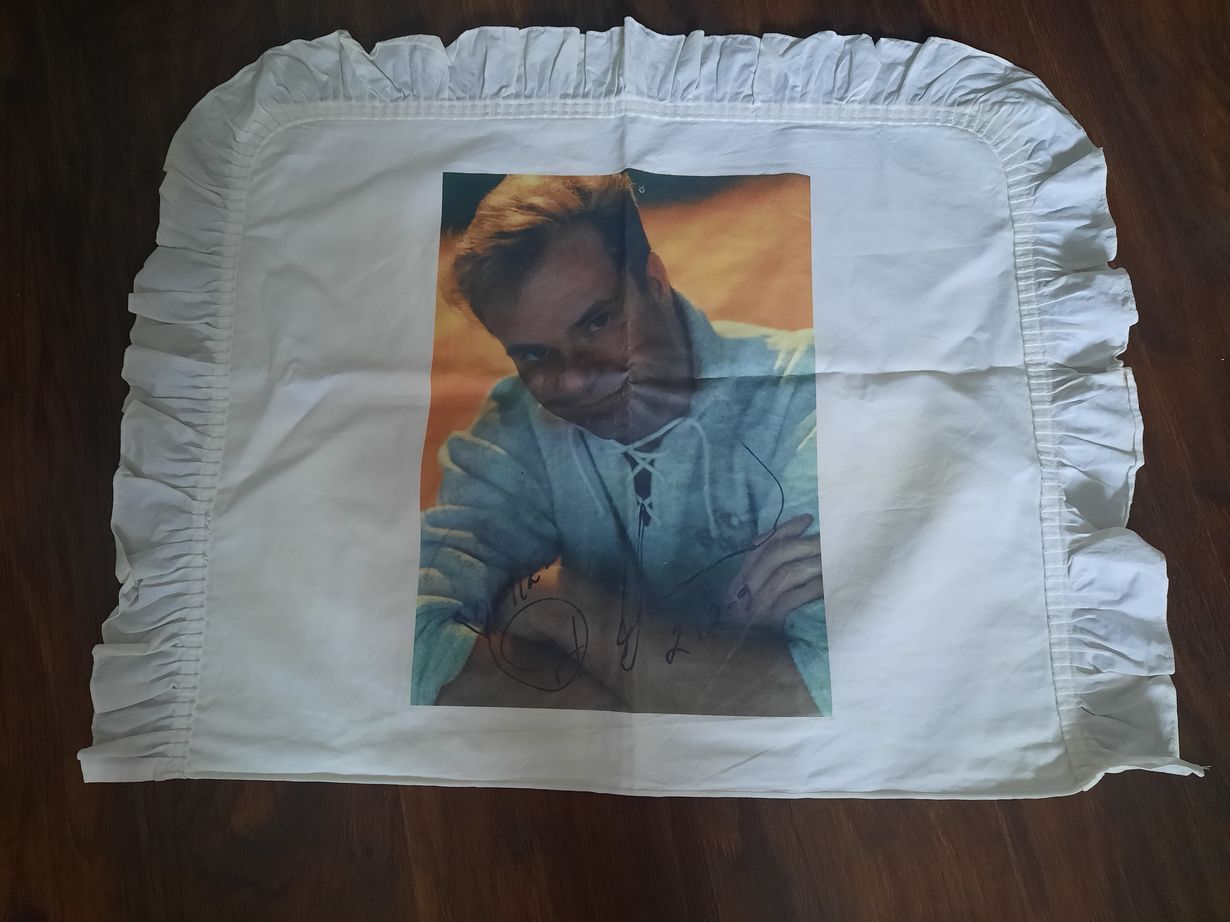 Sain tyynyliinan laulajasuosikkini kuvalla varustettuna työkavereilta 27v sitten.