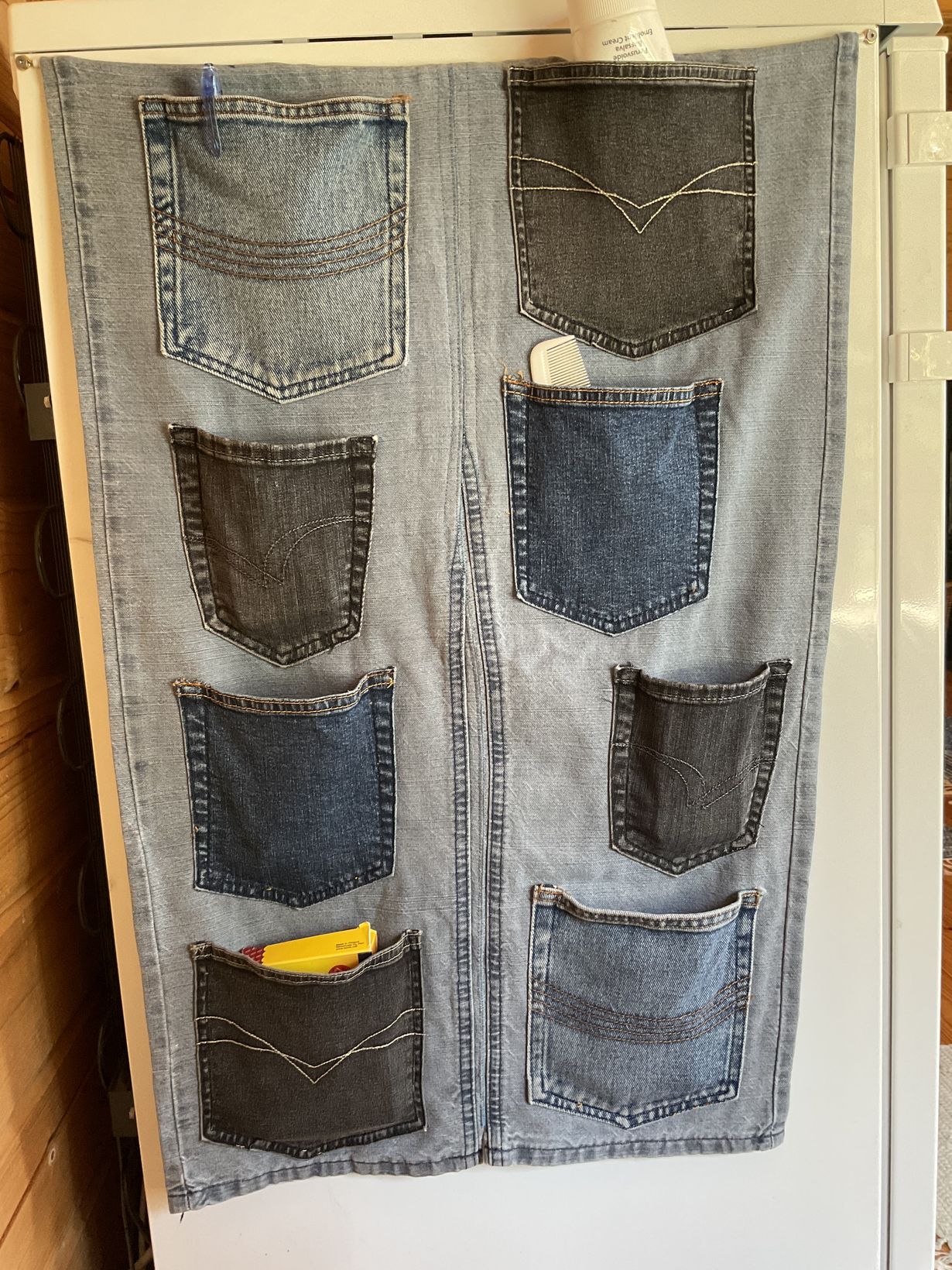 Farkunlahkeet roikkuvat nyt mökkijääkaapin sivuseinässä. Pelikortit, käsivoide, kampa, kynät ovat näin helposti saatavilla.