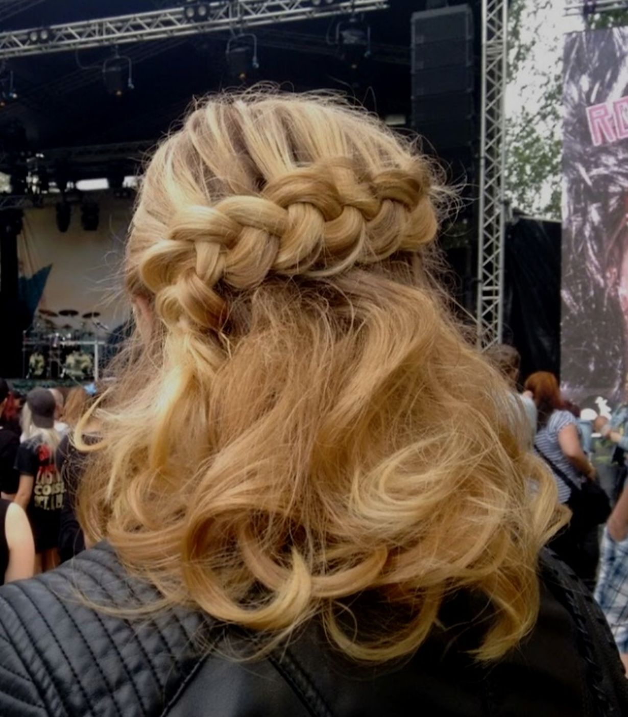 Kuopiorockissa sain ihanan festarikampauksen kauneuspisteen kampaajalta. Ei tarvinnut itse kiireessä väkertää. Itse en osaa tehdä kampauksia.