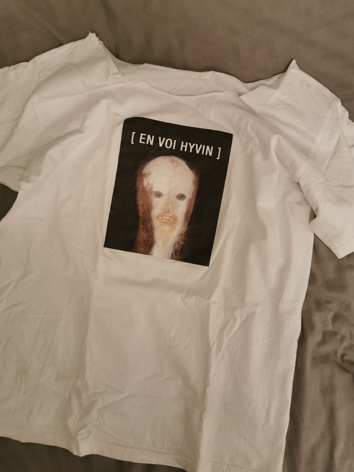 Olin ensimmäistä kertaa kolmen päivän festareilla, ja jossain vaiheessa tajusin tarvitsevani tukea, selviytyäkseni festarihumusta kolmannenkin päivän.. Sitten näin tämän paidan. Se auttoi, sillä aina peiliin katsoessa tajusin, että menee mulla paremmin kuin tolla paidan tyypillä!