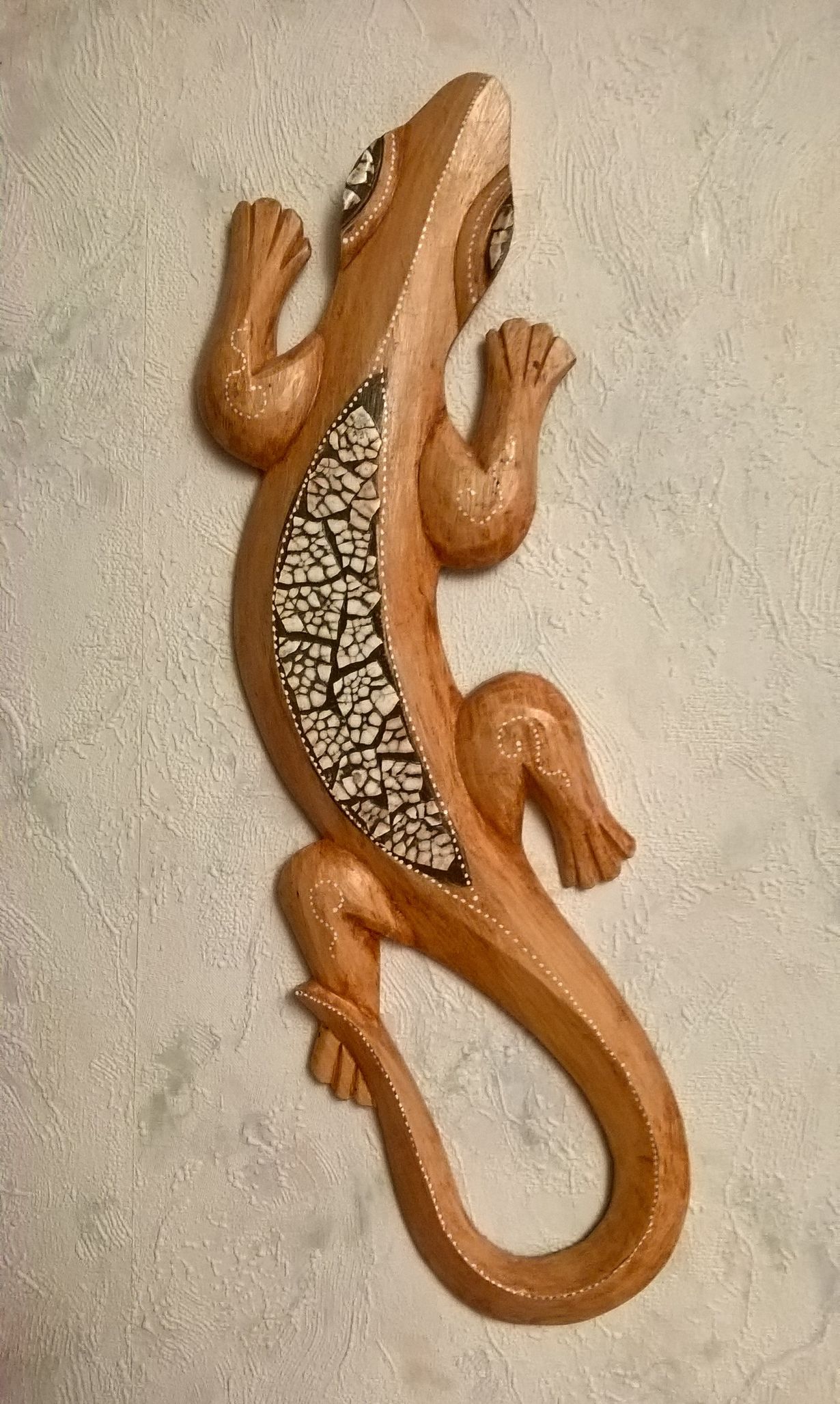 Thaimaan reissullamme opas sai minut liskoja kammoavankin rauhoittumaan kertomalla, että jalan yli juoksevat gekot tuottaisivat onnea. Tämä seinällämme kiipeilevä gekko taitaa olla ainoa matkamuisto, jonka ostamiseen olen suostunut.