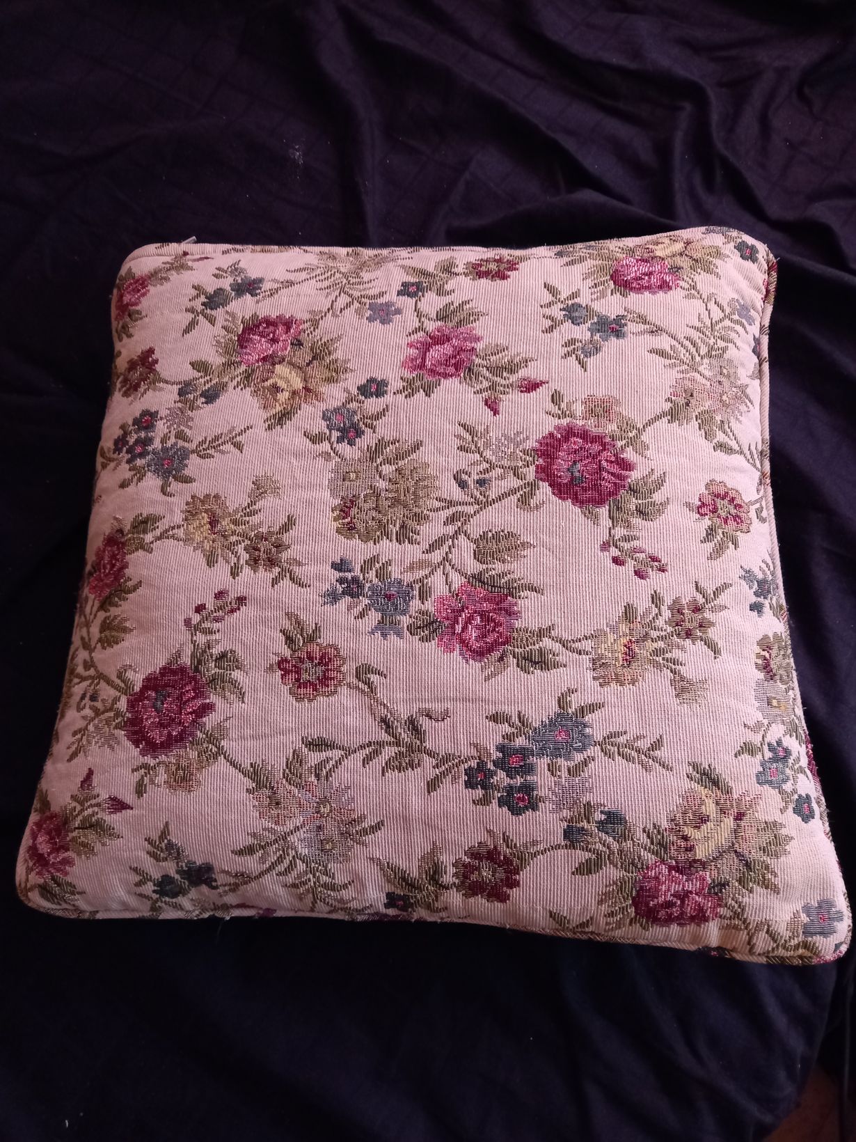 Lähetä kuvakisaan kuva sisustustyynystäsi - voita Familonin peitto ja tyyny! Gobeliini-päällinen Sininen hilkka 25.7.2022 klo 9:40 Vaihtelen monesti tyynyjen koristepäällisiä. Tässä kukkainen gobeliini-päällinen. Eniten suosin yksivärisiä.