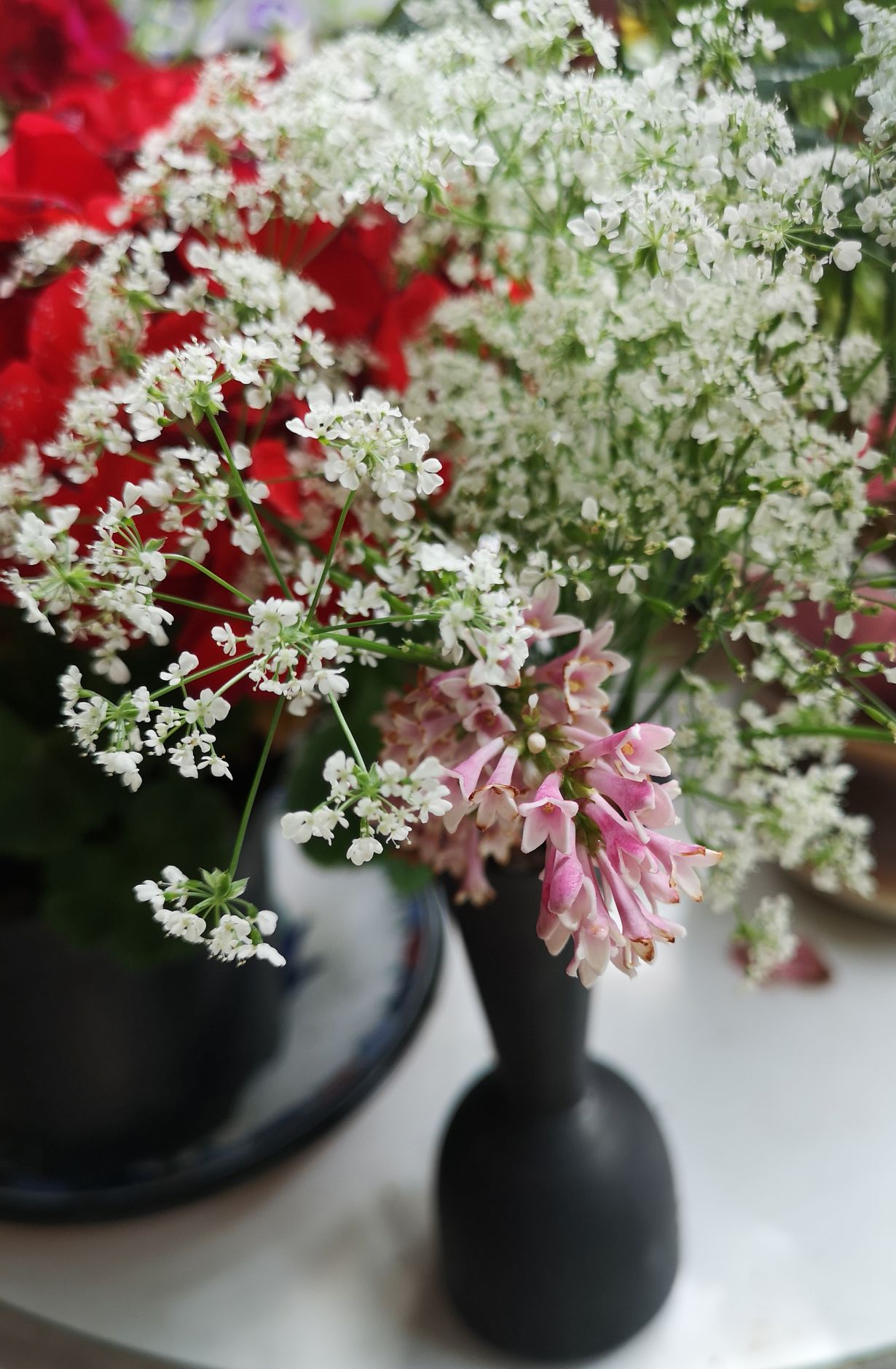 Lähetä kuvakisaan kuva kesäkukista maljakossa - voita Familonin vartalotyyny Häähuntua... 28.6.2023 klo 22:19 Häähuntua ja pinkkiä maljakossa partsilla pelargonian ja orvokkejen kanssa