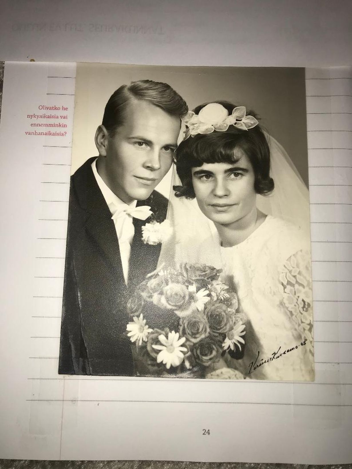 Lähetä kuvakisaan kuva, joka on muisto isovanhemmastasi - voita Familonin vuodevaatteita! Hääkuva vuodelta 1965 Anneli 26.5.2024 klo 13:22 Isovanhempani olivat säästäneet minulle tämän vanhempieni hääkuvan.