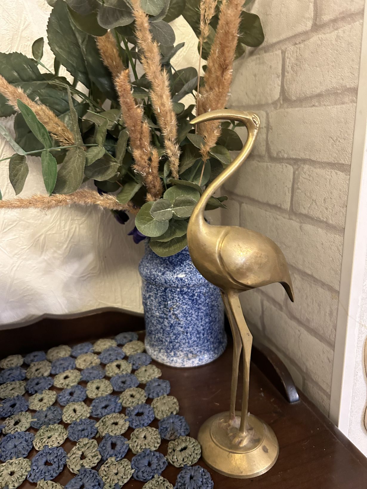 Seurustelumme alussa päätimme mieheni kanssa ostaa toisillemme lahjat. Sain tämän messinkisen haikaran. Enteellisesti ”haikara” vieraili vuosien saatossa viisi kertaa.