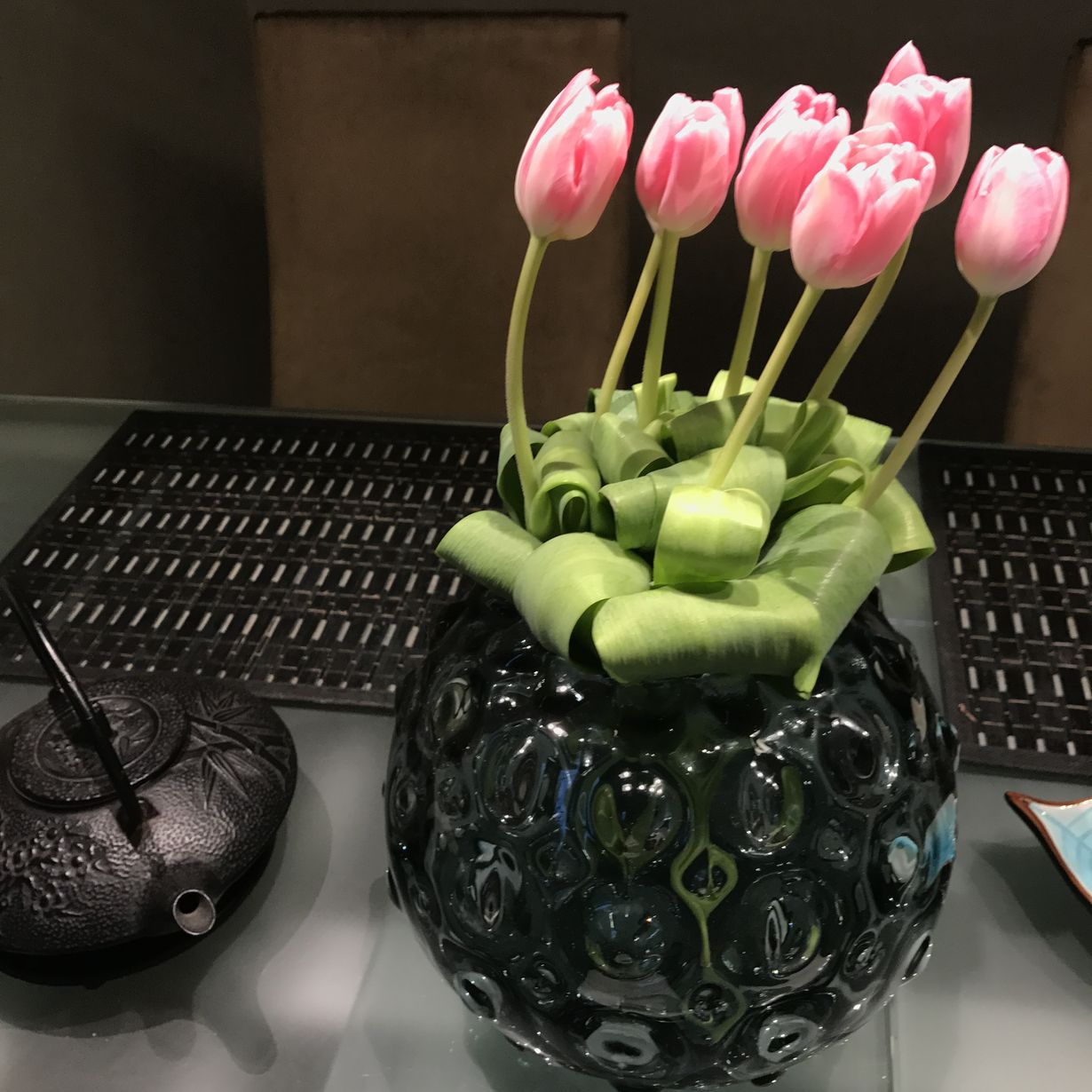 Kukkamaljakkoni osui silmääni kauniin kutsuvana Oulun Stockmannilla jo kuukausia sitten. Pyörittelin käsissäni tätä upean vihreää lasimaljaa mutten raaskinut sitä ostaa. Kuukausia myöhemmin saimme kuulla Stockmannin lähdöstä Oulusta. Loppuunmyyntiin menin harhaellen, haikeana katsellen tyhjenevää tilaa ja hyllyjä - kunnes näin sen, aiemmin ihailemani maljakon! Nyt koristaa keittiön pöytää haikeana muistona.