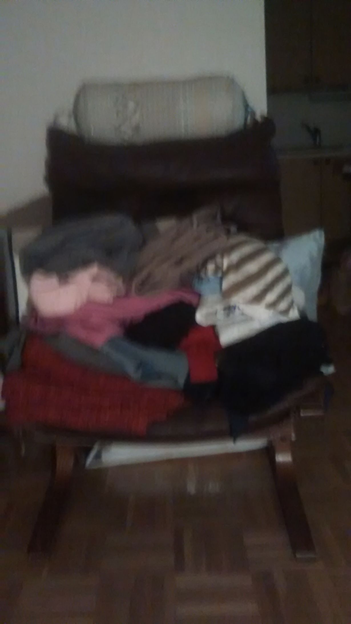 Pyykit odottelevat välillä pesuvuoroaan nojatuolissa