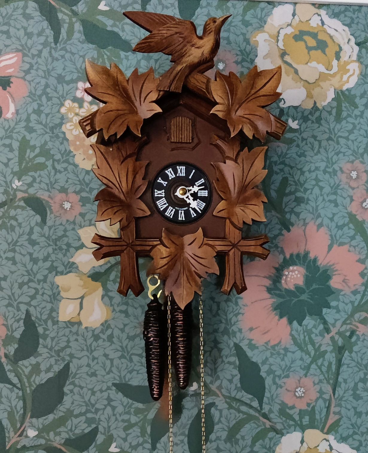 Ostin pitkäaikaisen haaveeni, käkikellon, muutamalla kympillä. Se laittaa hymyn huulille joka ikinen päivä puolen tunnin välein. Kello on vedettävä, joten käpyjen nosto on minun ja mieheni jokailtainen lisähupi. Voi miten osaakin olla mainio kapistus! Lisäksi kellon myynyt vanhempi rouva oli onnellinen, koska käki pääsi kukkumaan lapsiperheen kotiin.