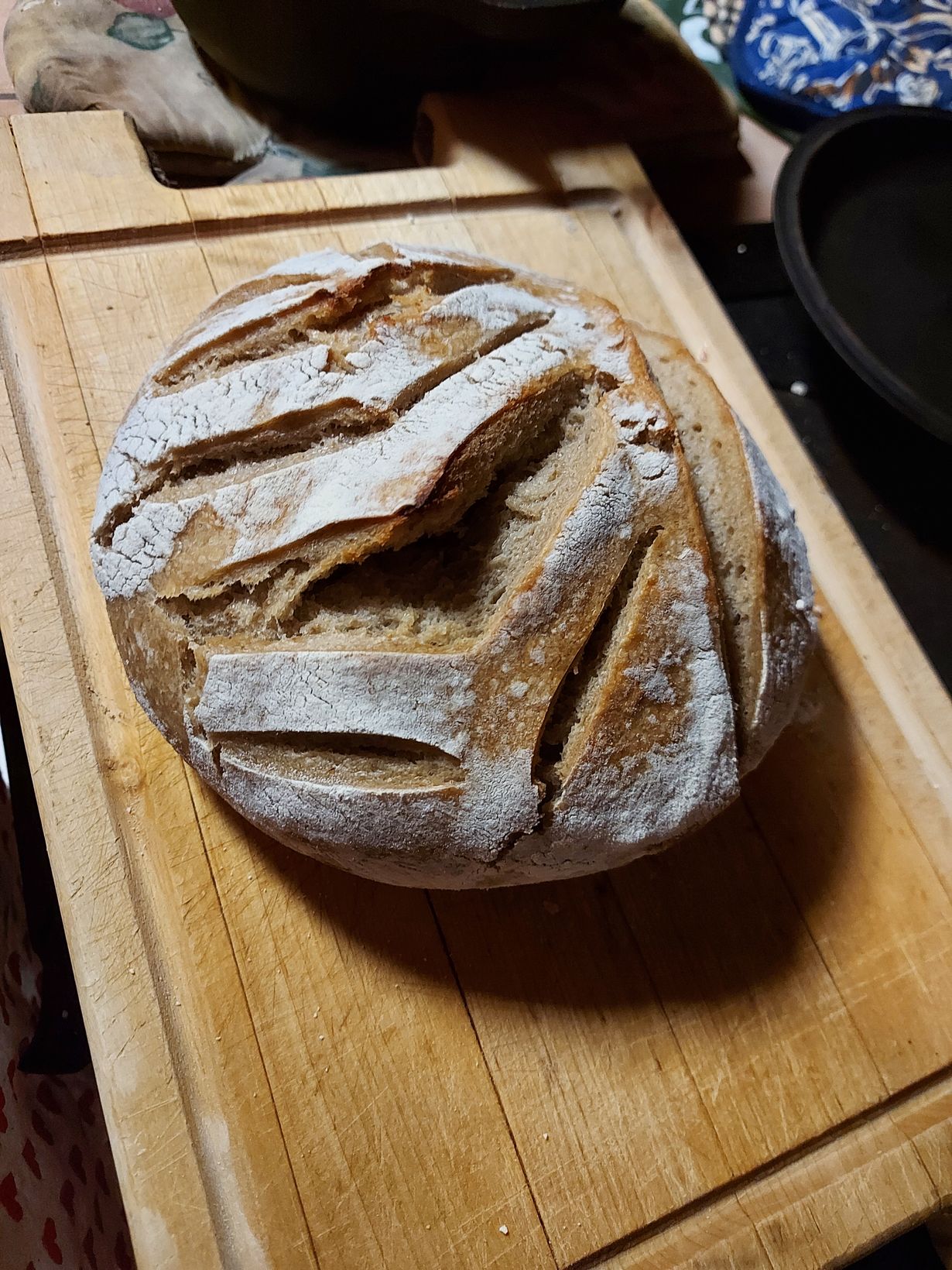 Eka leipä oli kovakuorista ja liian tiivistä mutta ihan hyvänmakuista, toisen kuoreen pystyivät jo hampaatkin kunnolla.