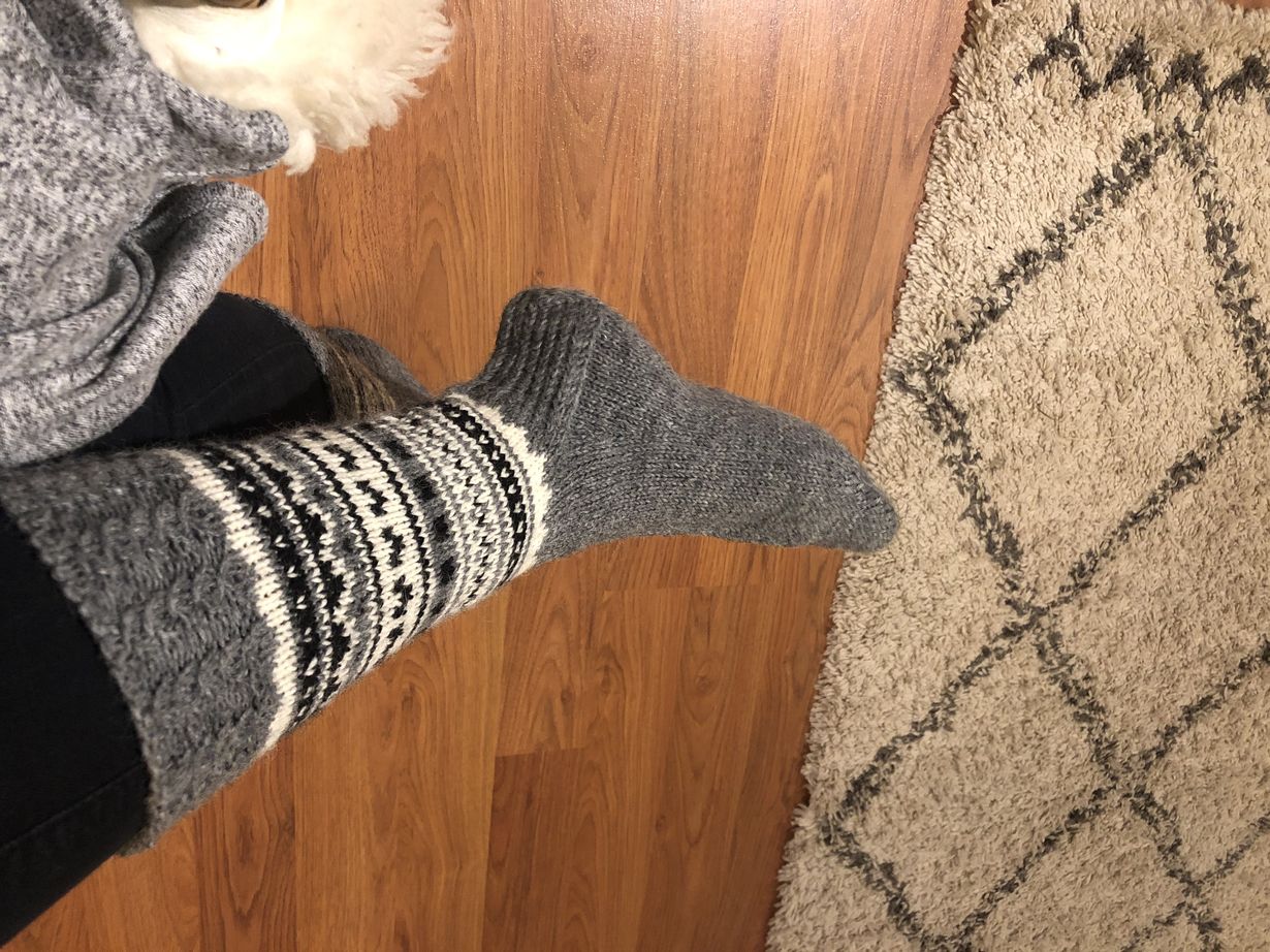 Lähetä kuvakisaan kuva villasukistasi - voita Familonin peitto ja tyyny! Harmaat pitkät sukat Katja 11.8.2022 klo 10:16 Äitini synttärilahjaksi minulle kutomat ihanimmat harmaat villasukat, joissa on pitkä lämmittävä varsi.