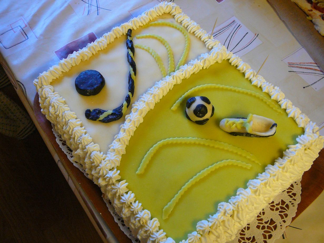 Tyttäreni harrastaa jääkiekkoa ja jalkapalloa ja tein hänelle aiheeseen sopivan kakun rippijuhliin.