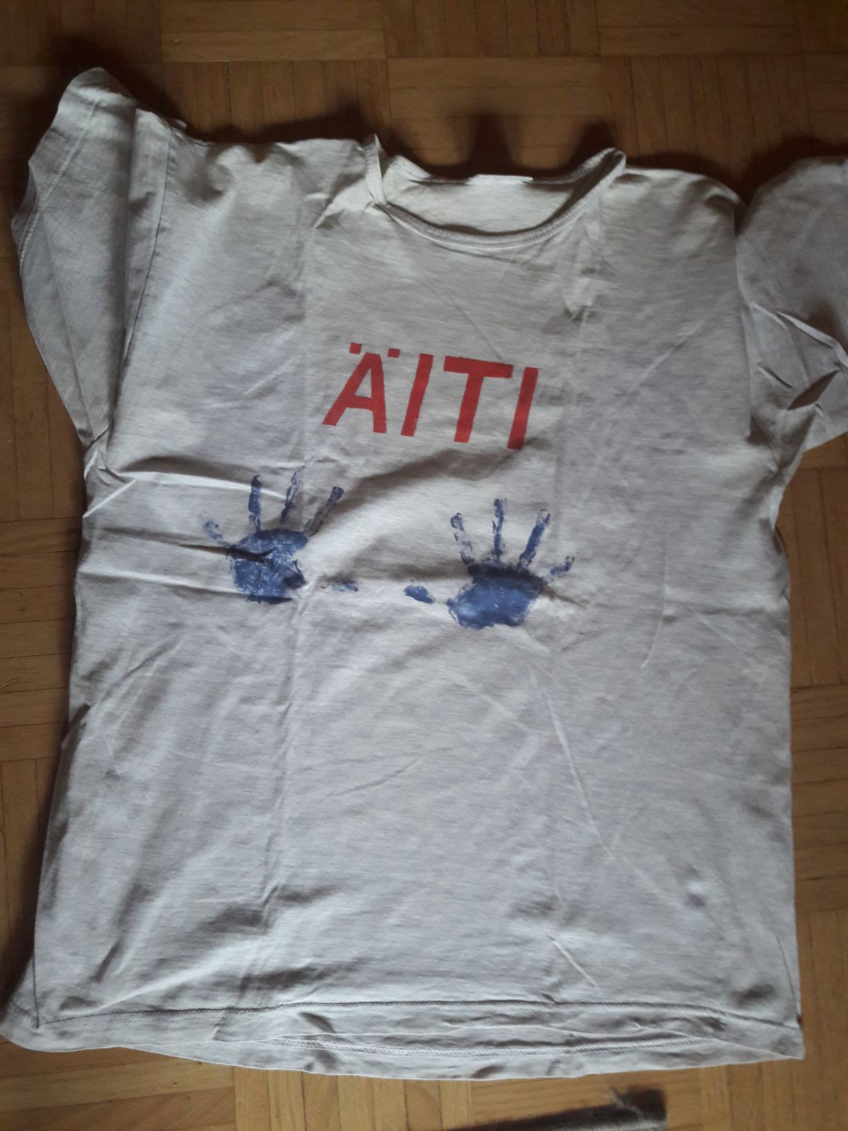 Lapseni päivähoidossa äidinpäiväksi tekemä lahja. Kämmenet osuvat juuri 'sopivasti rintojen kohdalle ?