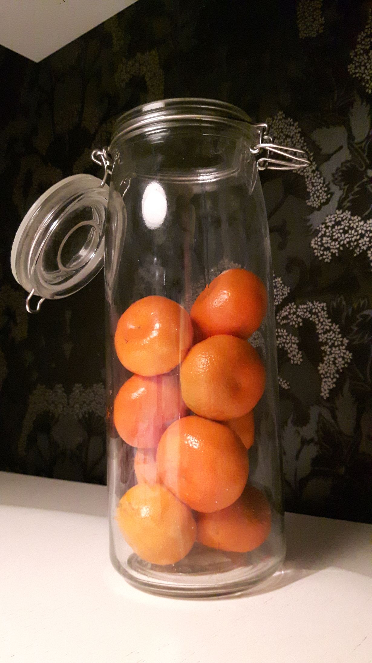 Meillä hedelmiä säilytetään vähän siellä sun täällä. Lasipurkit tähän tarkoitukseen ovat yksi suosikkini.