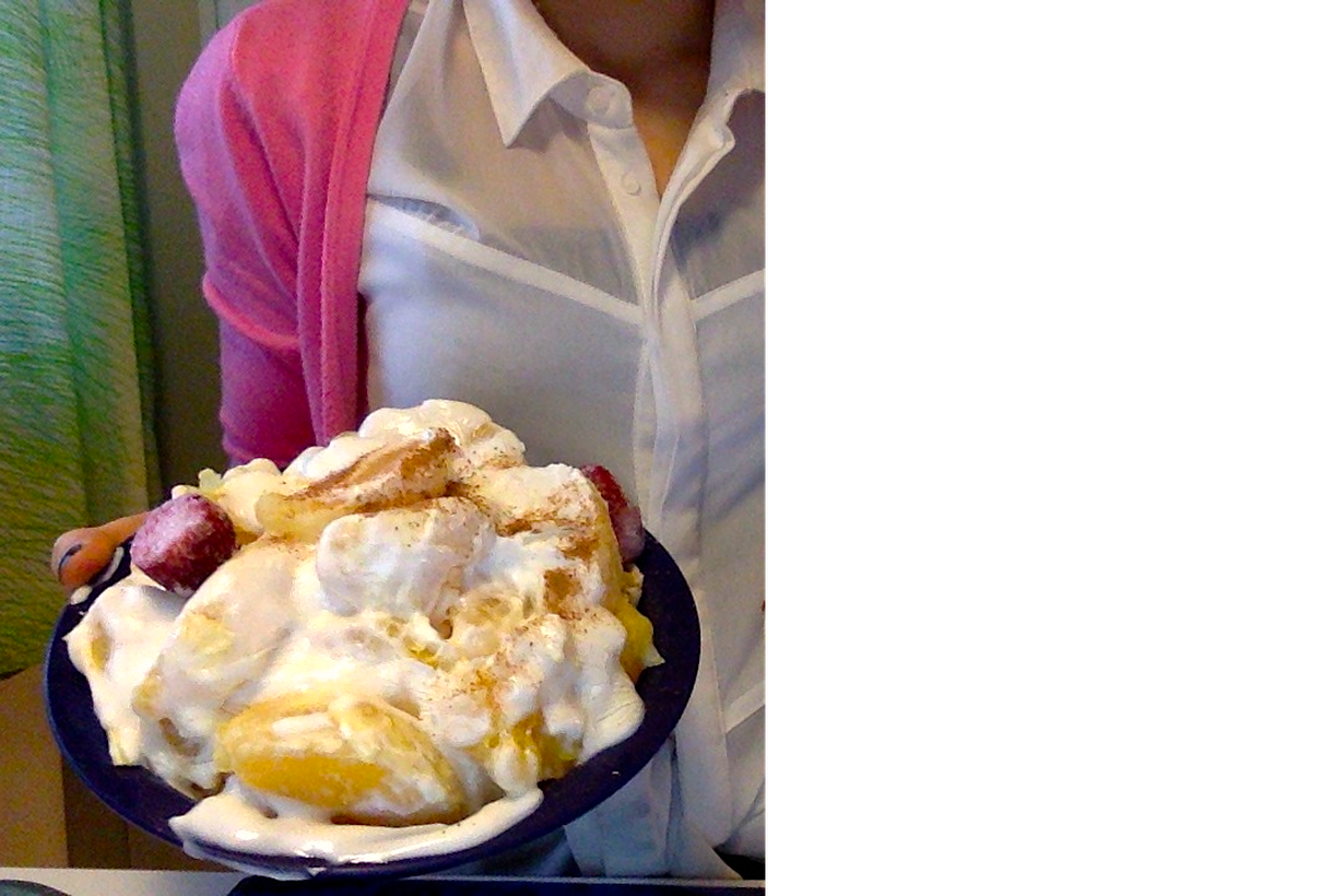 Kuvaa aamupalasi – voit voittaa Familon-untuvapeitteet! Helleaamulla Jep 28.6.2018 klo 17:08 Appelsiinia, omenaa, kiiviä, pakastemansikoita ja muita marjoja, jogurttia, ripauksella kanelia. Nam!