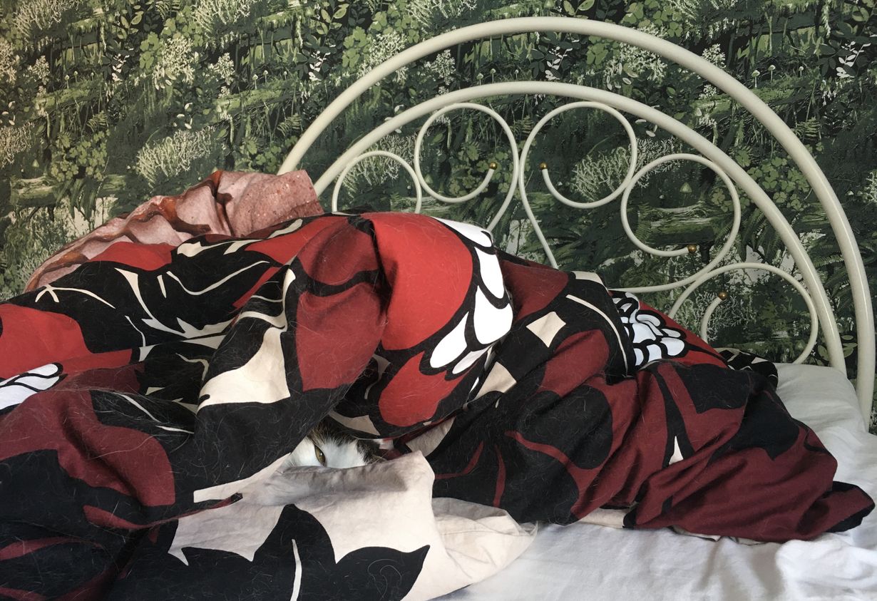 Helly ehtii tehdä pesän joka aamu nopeammin kuin petaaja ehtii paikalle. Jos peittoon koskee, uumenista kuuluu närkästynyt naukaisu. Perusteltu syy olla petaamatta!