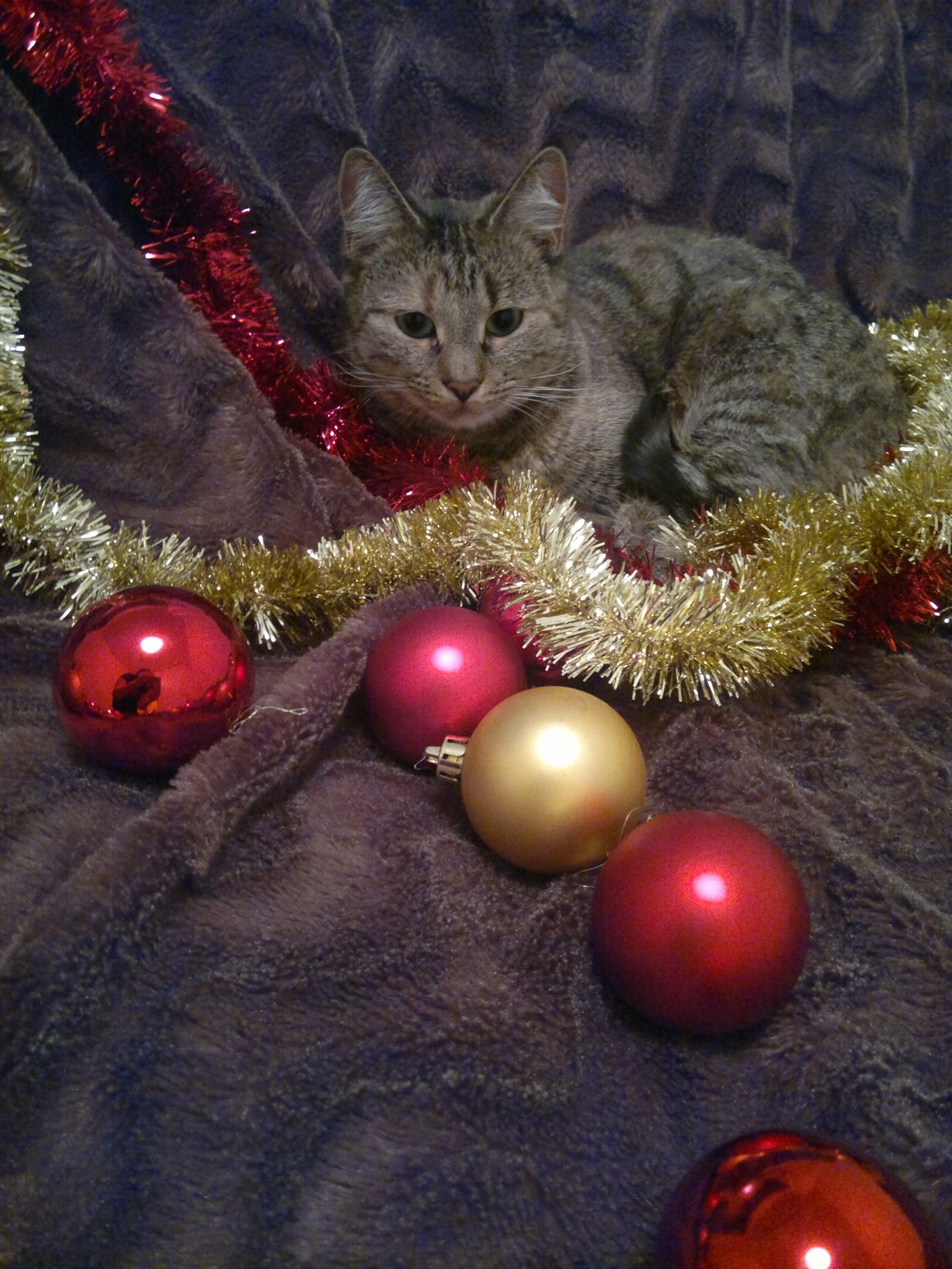 Tämä ihana arki: lemmikin joulukuva Helmi jouluna 3.11.2014 klo 14:50 Helmi viettää joulua pallojen ja nauhojen keskellä Truu